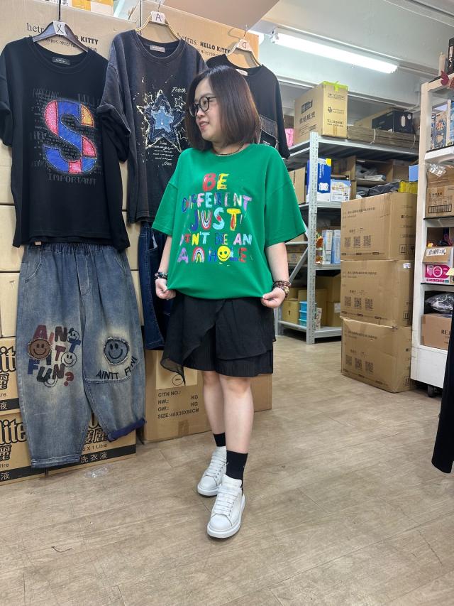 KF11 洗水色哈哈笑滿版TOP 長24吋、闊52吋 $129 紫、綠