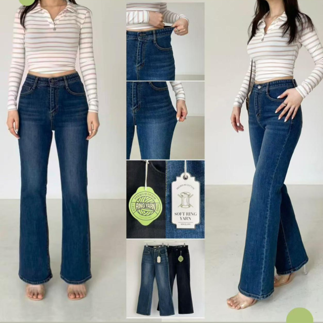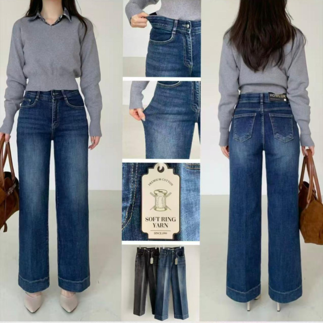 HK259 How Luk 黑灰水洗拉毛微喇叭牛仔褲 $189 S M L No.5644