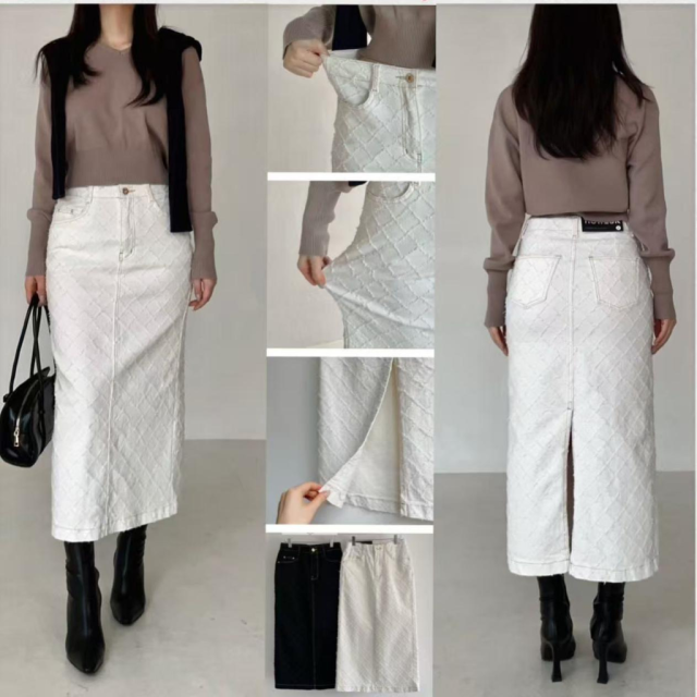 HK271 How Luk 造舊後開叉長裙 $159 黑色、白色 No.250