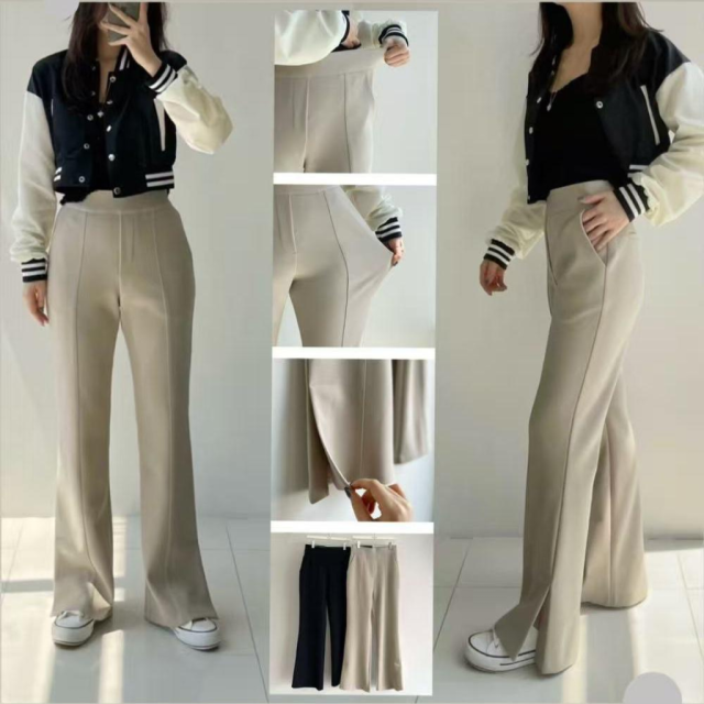 HK268 How Luk 高腰彈性開叉腳喇叭褲 $169 黑 L 杏色 S、M、XL No.351