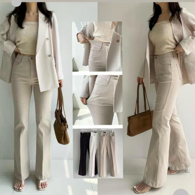HK270 How Luk 棉料喇叭褲 $159 杏色、 白色 No.253
