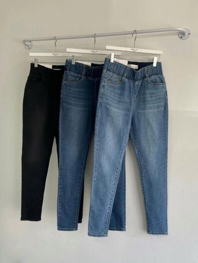 HK238 How Luk高腰收腹粗邊橡筋牛仔筒褲 S、M、L、XL、XXL 藍、黑 (No.9043-6) $169