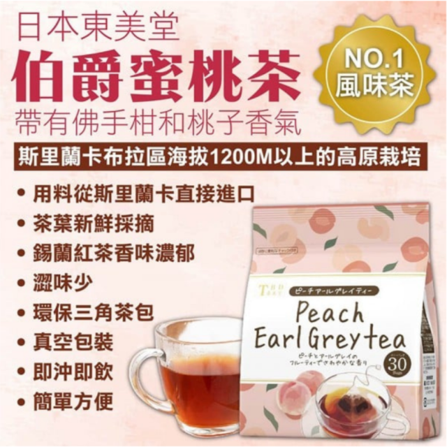 FD257 日本🇯🇵No.1東美堂伯爵蜜桃茶☕️☕️「1包30入」 $35@1