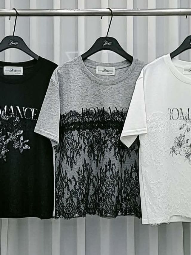 BA74 韓國 🇰🇷 棉拼LACE印字Top $99 黑、灰、白 長23吋、總闊40吋