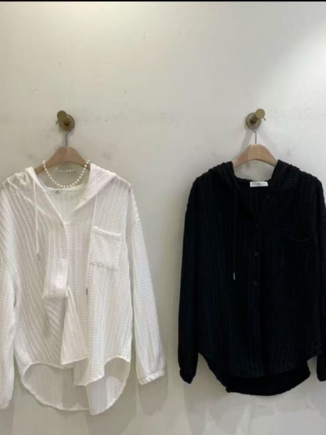 MO29 韓國 🇰🇷 暗紋有帽扣鈕Top $149 白、黑 前長26吋 後長30吋 闊48吋