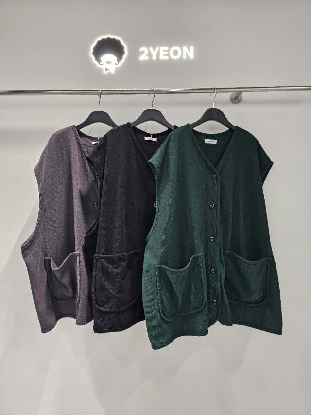 YE198 韓國 🇰🇷 2YEON 扣鈕雙袋背心兩著Top $349 灰、黑、綠、米 長32寸、闊66寸