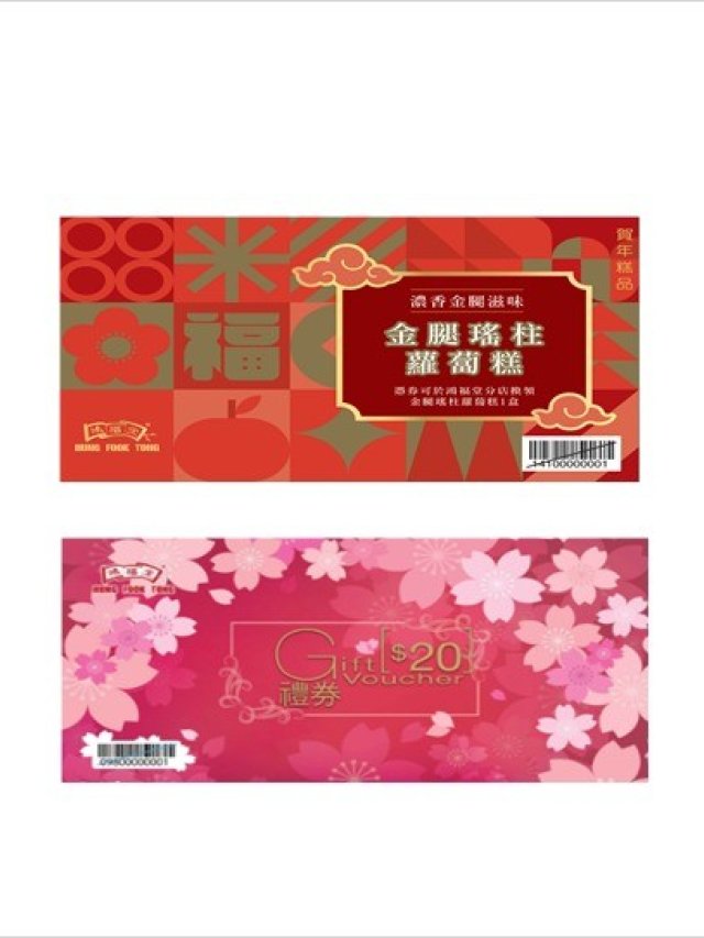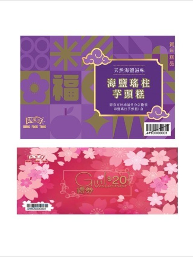 No.424 鴻福堂 【賀年糕券】金腿瑤柱蘿蔔糕禮券(1張) + $20 禮卡傳統版 (1張) $111@1套