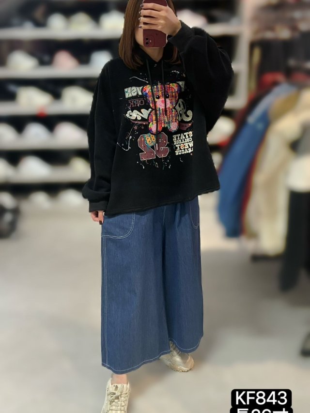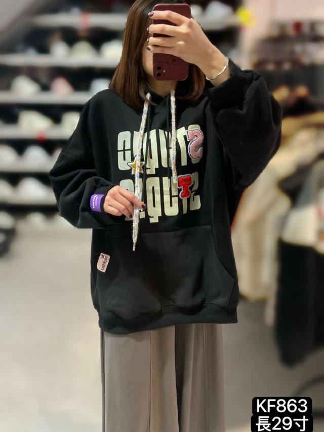 KF847 哈哈笑太陽花有帽TOP 黑、灰 長29寸、闊58寸 $199