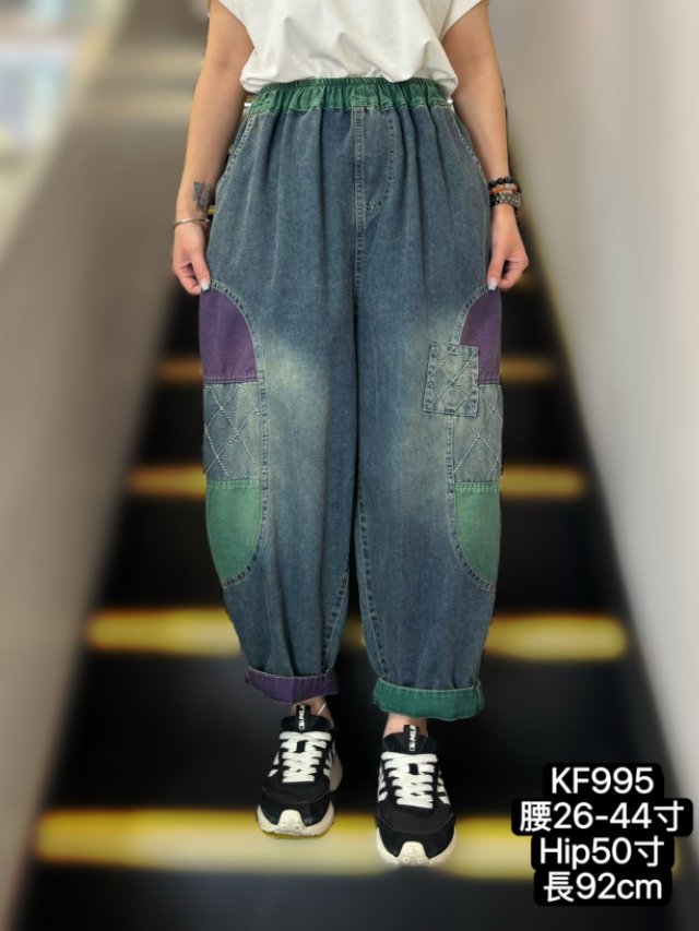 KF995 全橡筋腰撞色繡線牛仔褲 $179 腰26-44吋、HIP50吋、長92cm