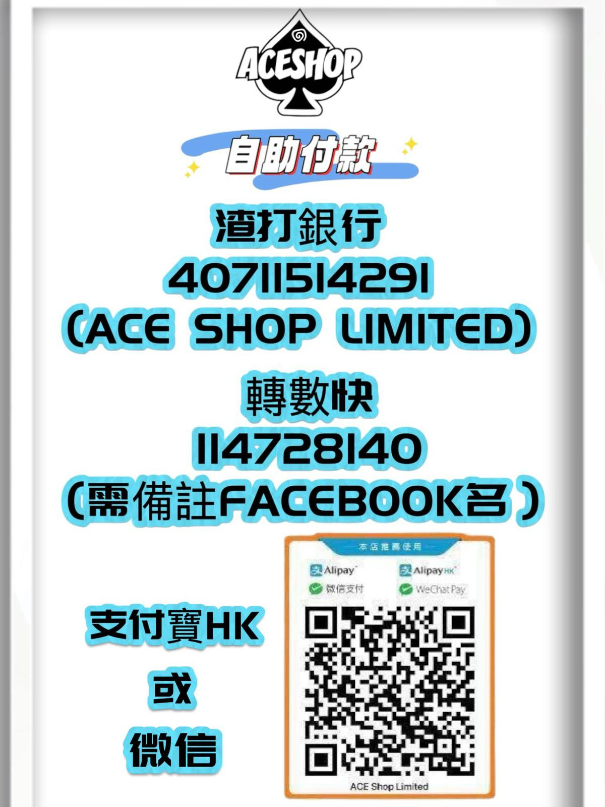 ACE 支援網上轉帳 / 轉數快 / Wechat Pay / Alipay / Payme