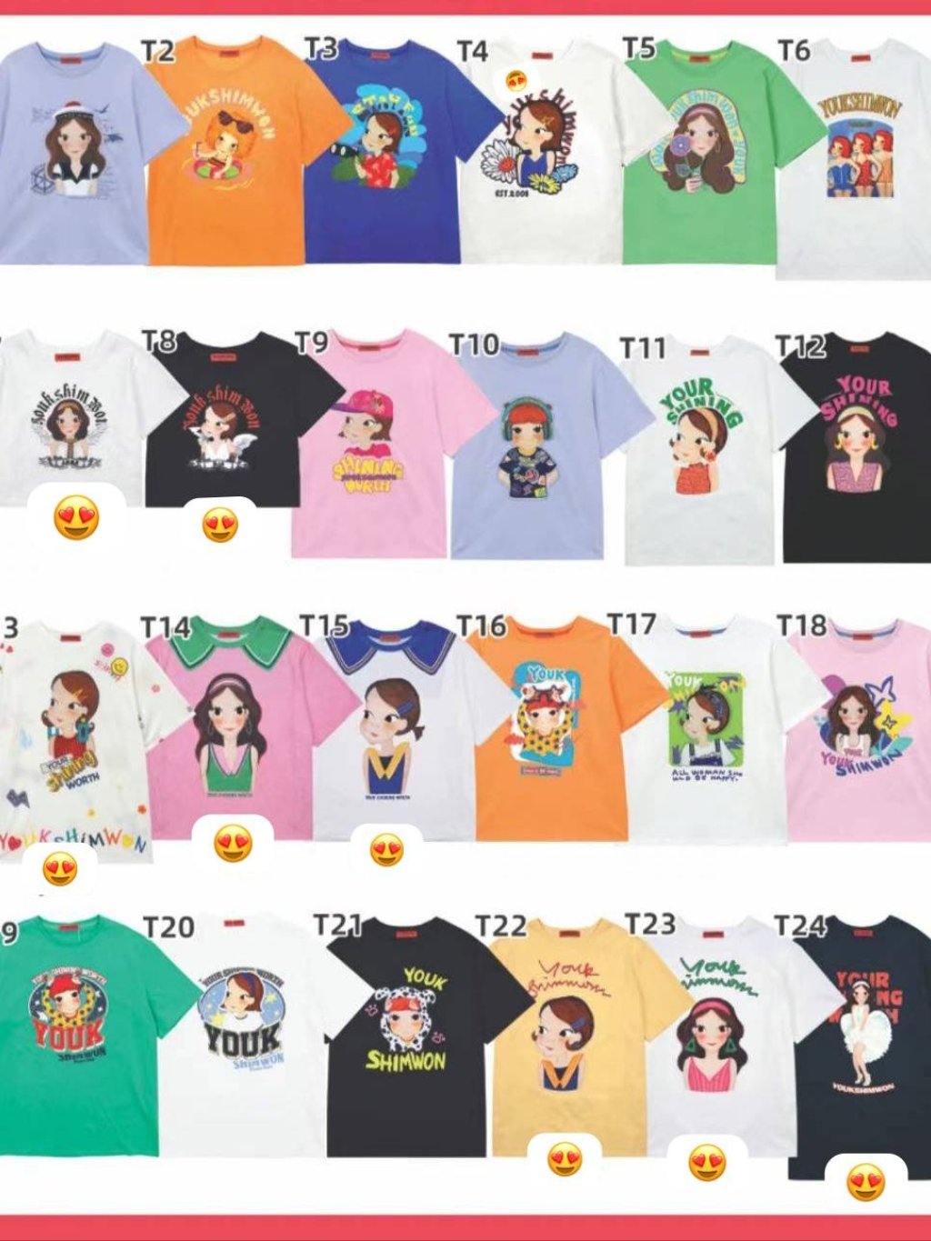 陸芯媛半價短袖TEE T1~T21 $189 T7、T8 $169 T13~T15 $209 T22~T24 $199