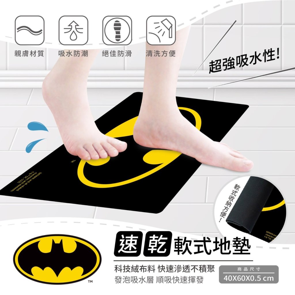 台灣 蝙蝠俠3秒瞬吸速乾軟式地墊