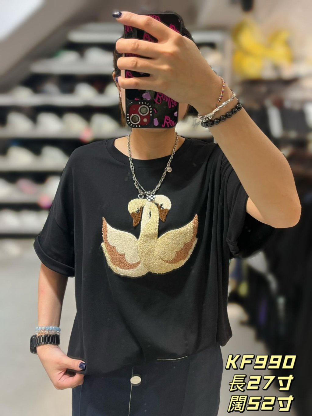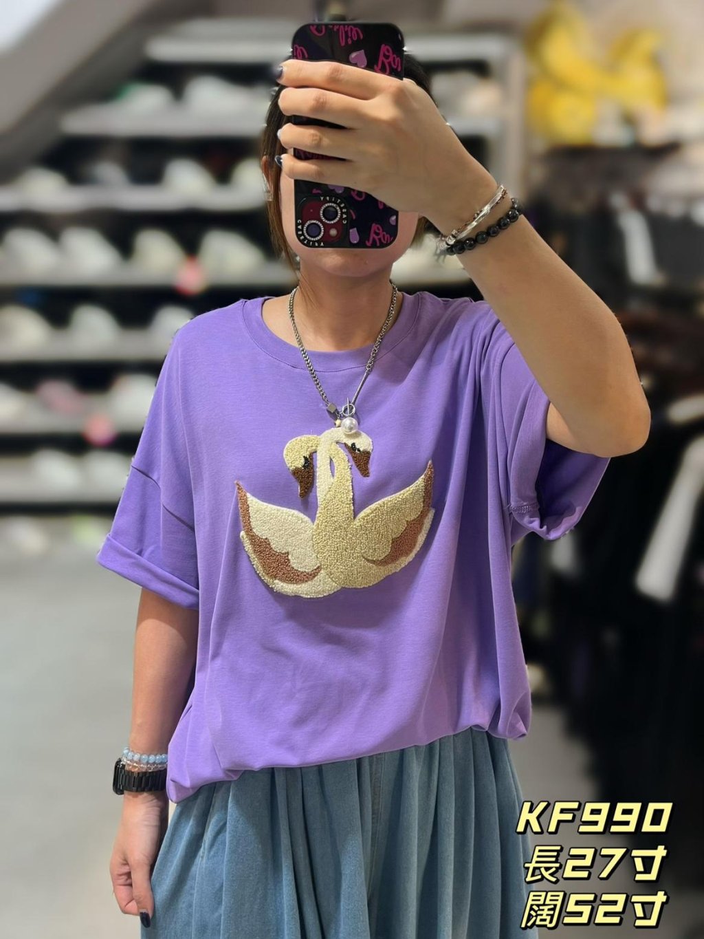 KF990 棉料立體天鵝TOP $130 紫、黑、啡
