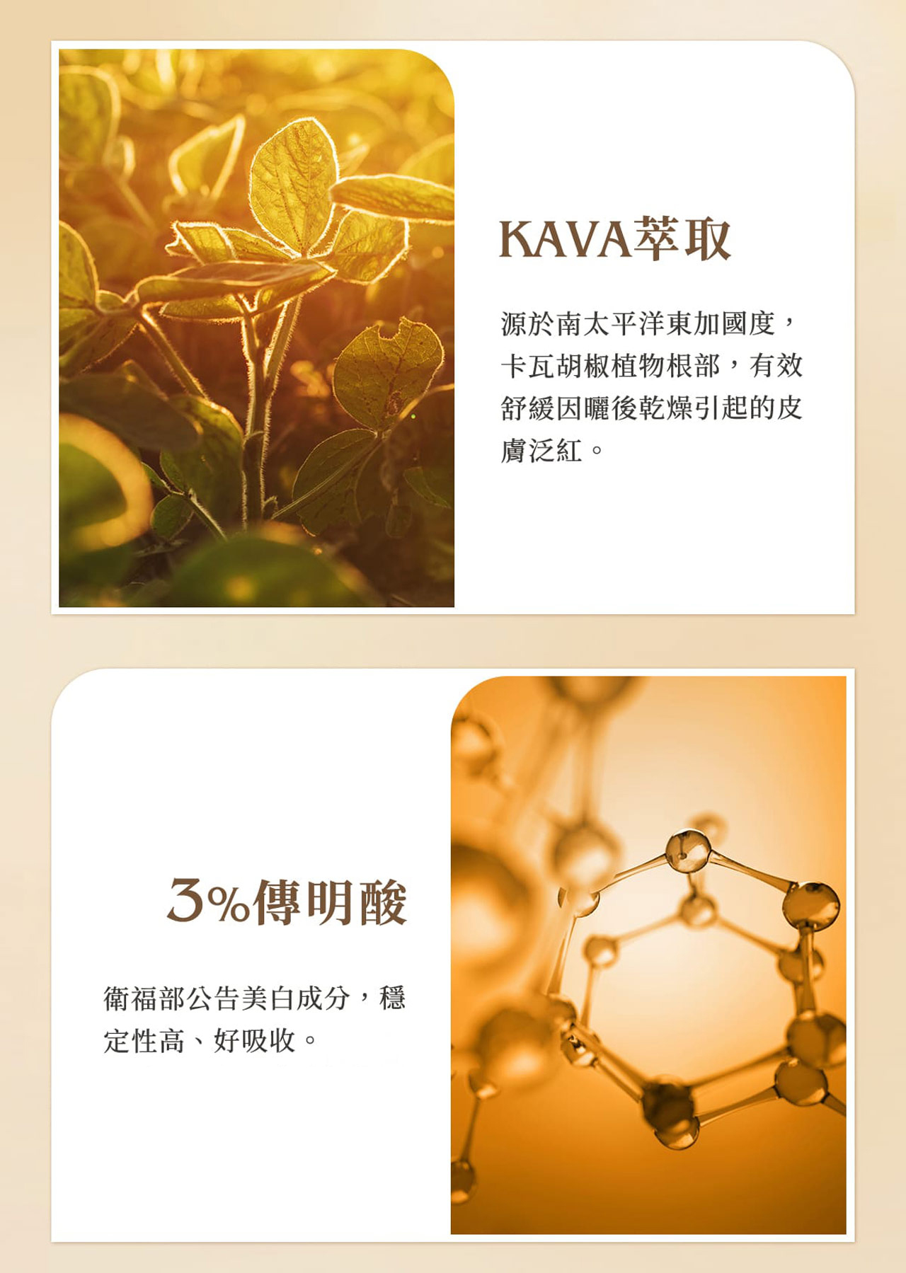 1️⃣防止曬後變黑:珍貴南太平洋植物「KAVA萃取」有效舒緩曬後發紅變黑