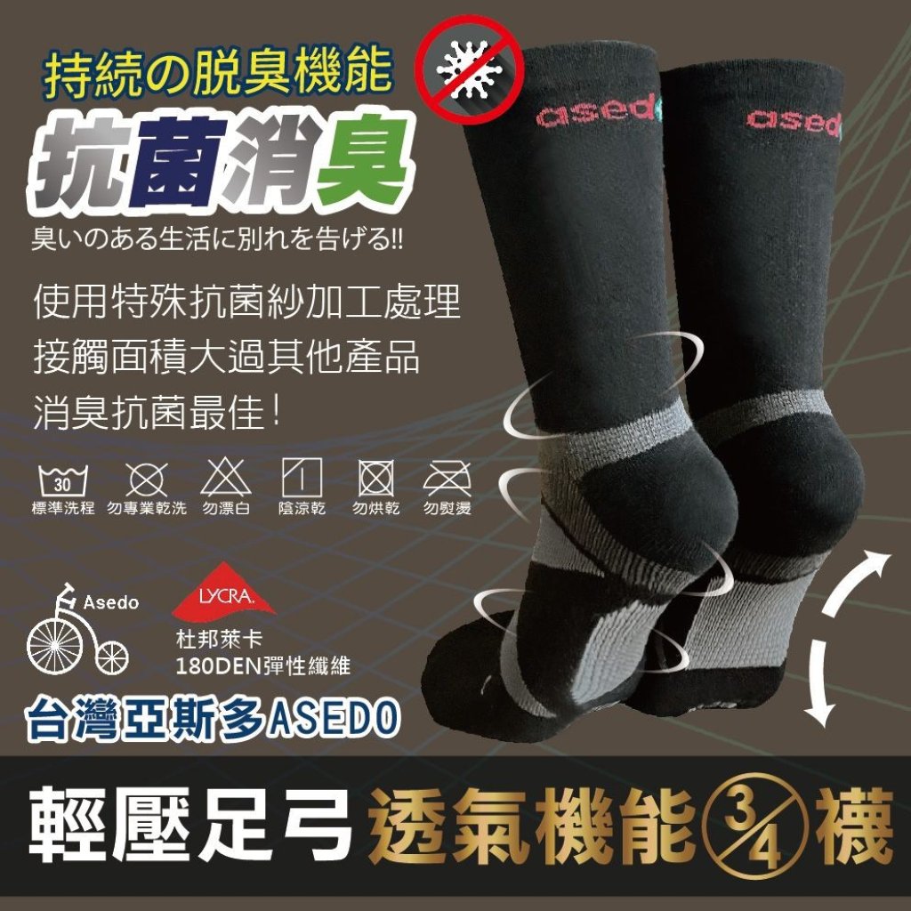 No.3217 輕壓力足弓抗菌除臭¾機能長襪8雙組 全黑款 ACE直播價$218@1,OneSize(23-28cm)