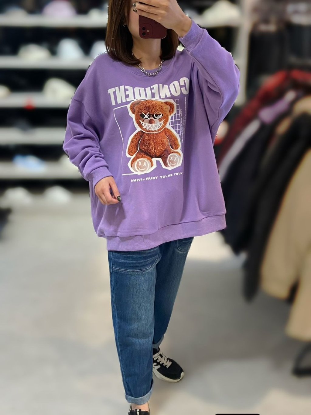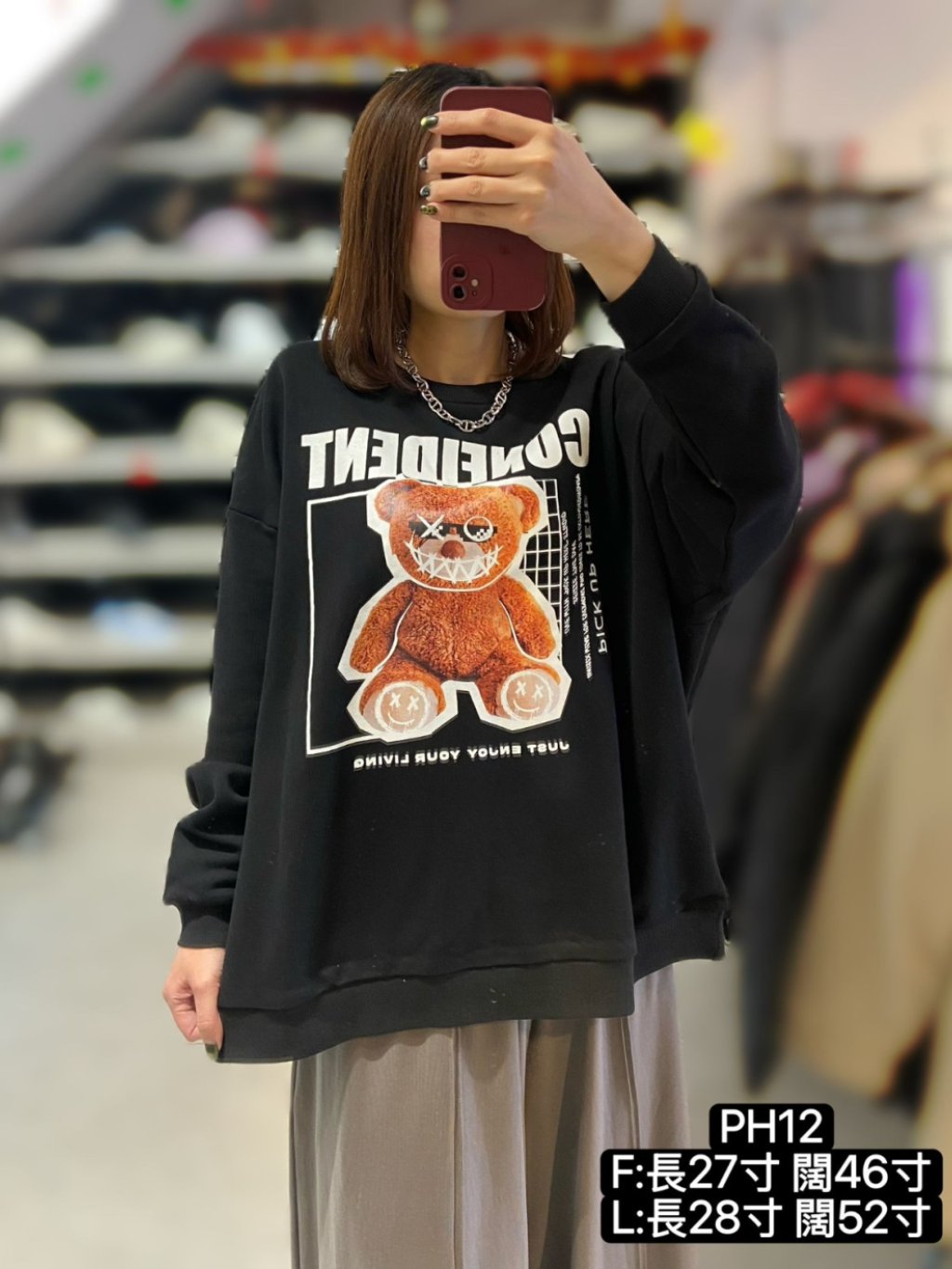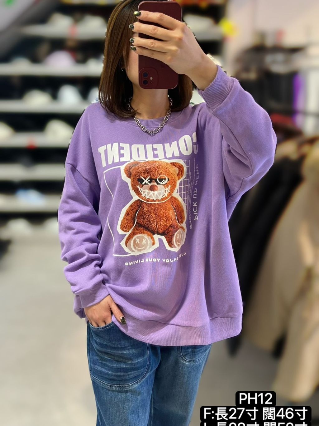 PH12 韓國 🇰🇷 PICK UP HERE奸笑熊仔衛衣 ❌原價$449❌ ACE直播價$149 黑、藍、紫 Size:F、L