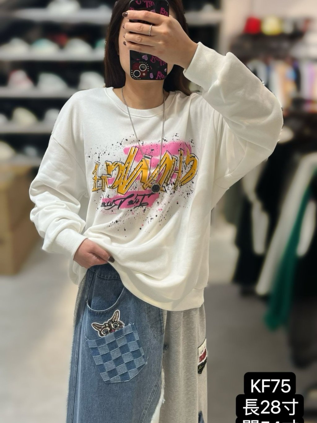 KF75 潑墨立體英文字Top $129 黑、 白 長28寸、總闊54寸