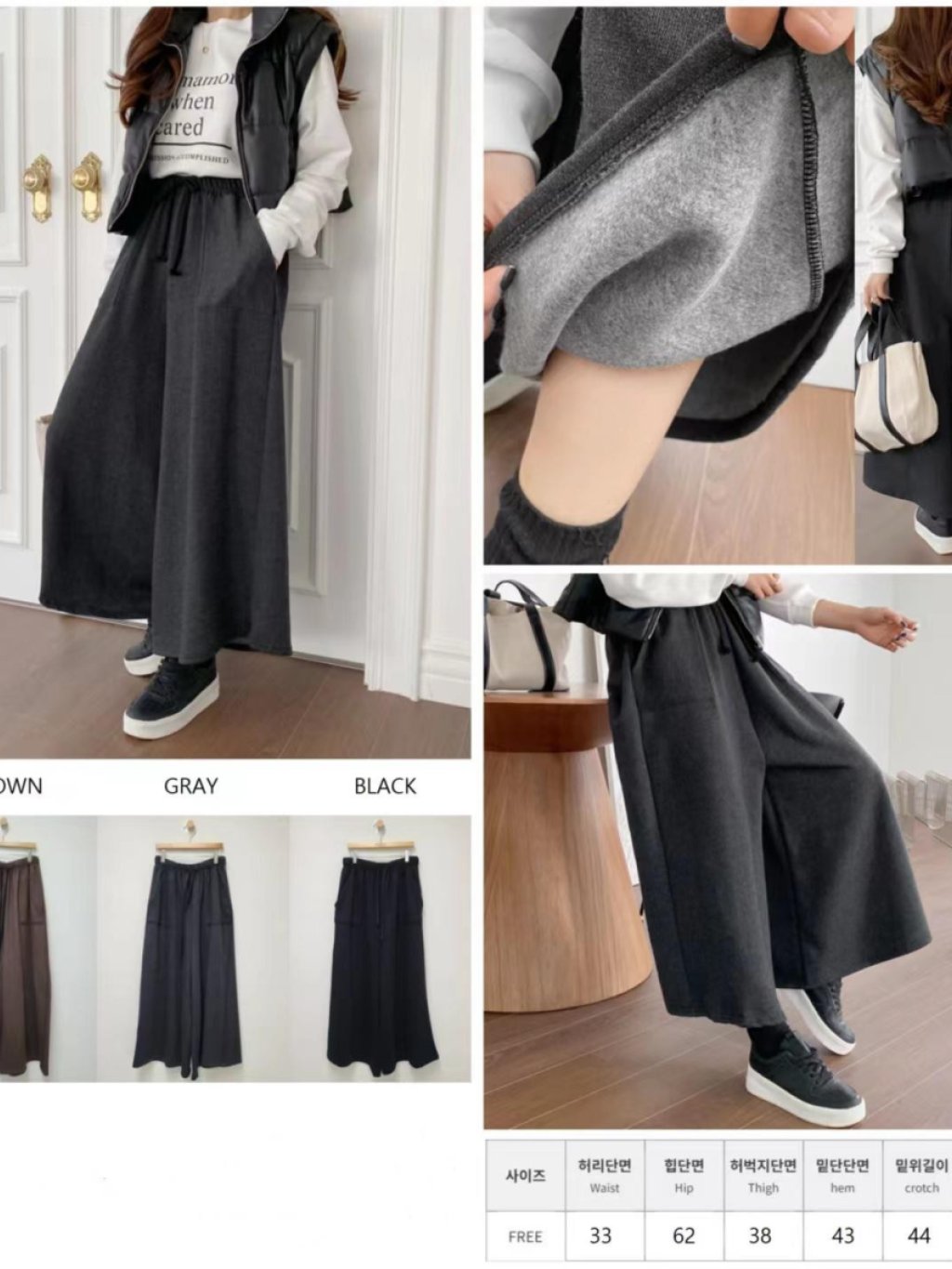 SJ26 薄絨闊褲 $119 黑、灰、啡