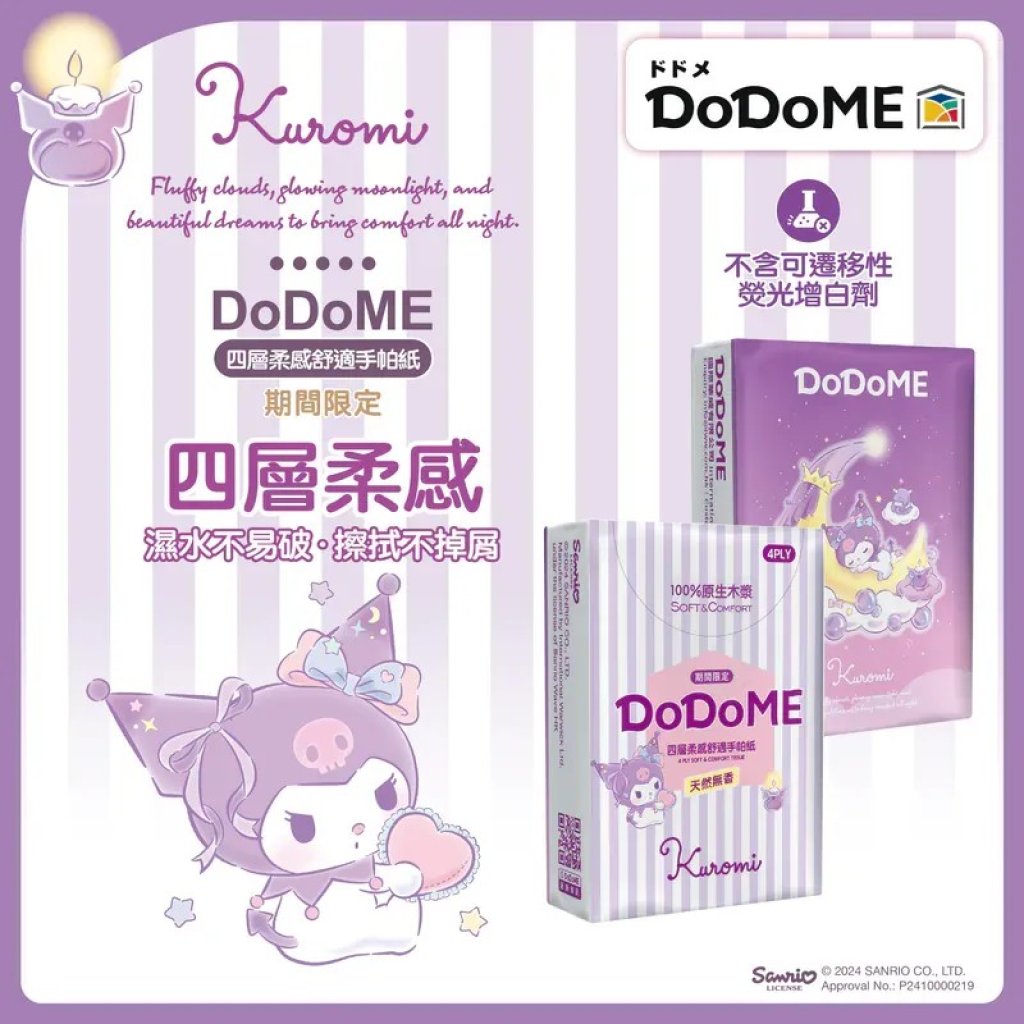 DE64 DoDoME 四層柔感舒適手帕紙 7p*12 - Kuromi期間限定(一套5條) $40@1套, $75@2套