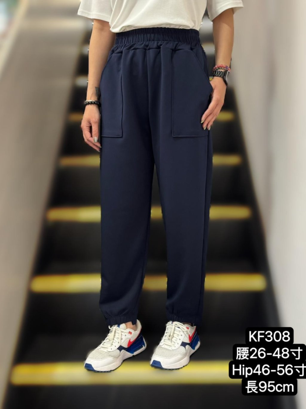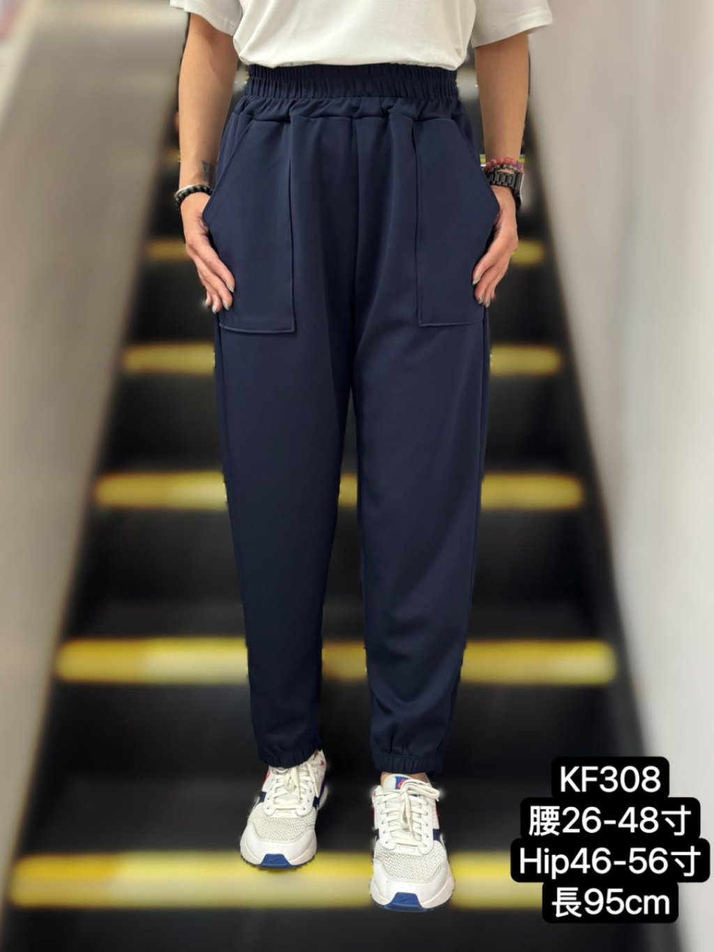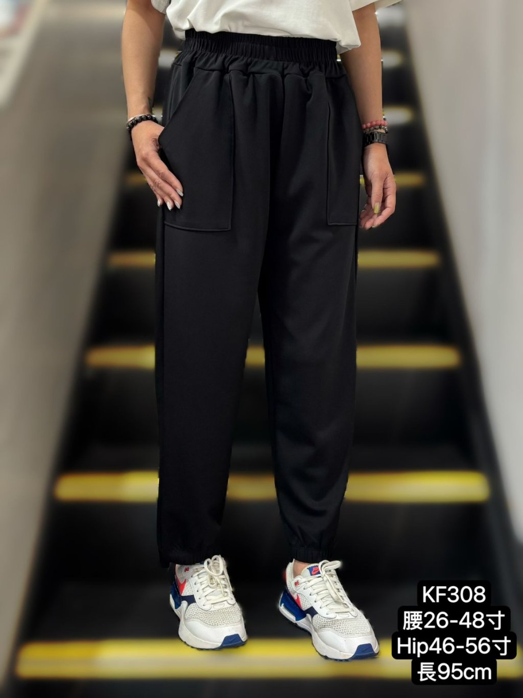 KF308 全橡筋腰超舒服高低腳棉褲 $159 杏、啡、藍、黑
