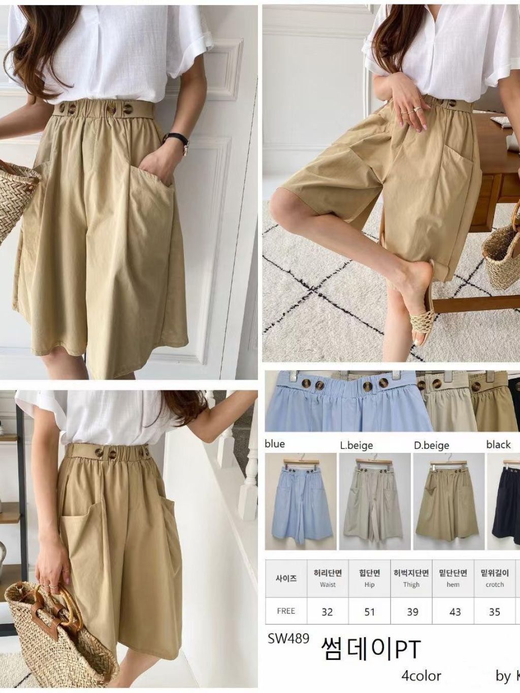 SJ39 全橡筋腰排鈕西裝短褲 $109 藍、淺杏、深杏、黑