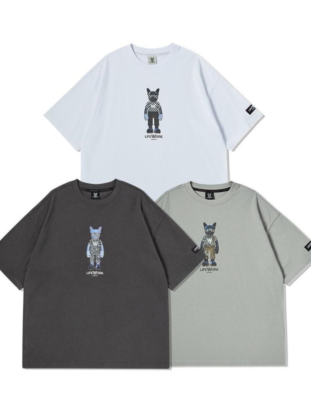 LW319 LIFEWORK 中間紫頭站立狗 TEE $249 S、M、L白(WHITE)、淺灰(LIGHT GREY)、深灰(CHARCOAL GREY) LW252TS112-1