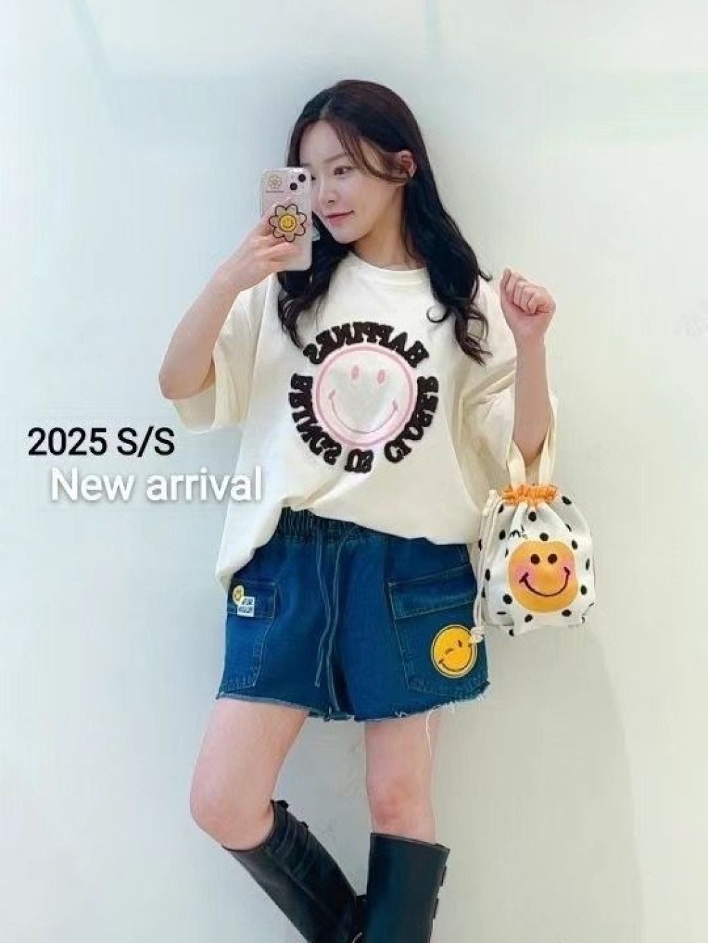 主頁 AA38 棉料圍圈字母哈哈笑Top $159 米、粉、藍、黃、灰 長29吋、總闊52吋