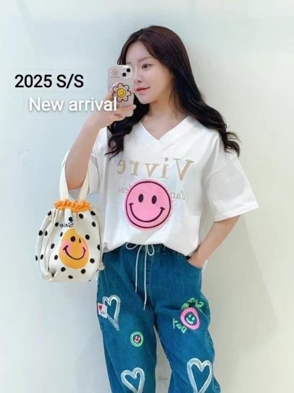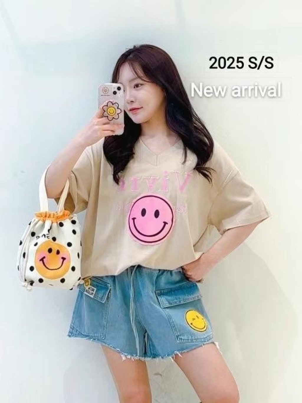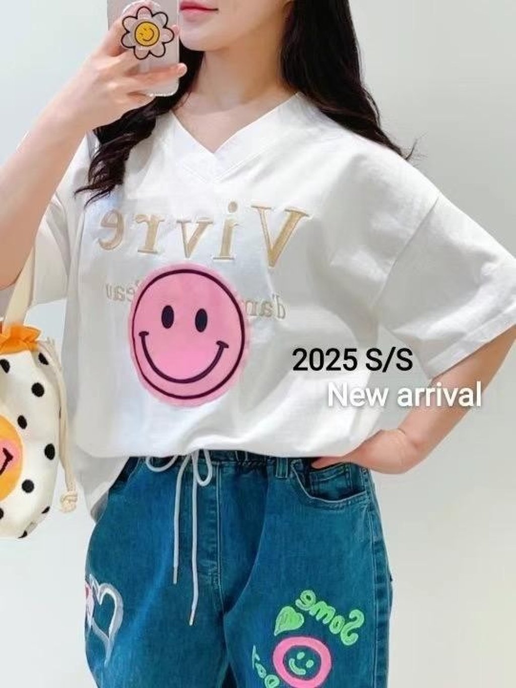 主頁 AA43 刺繡字哈哈笑V領TOP $169 白、粉、杏、黑 長26吋、總闊46吋