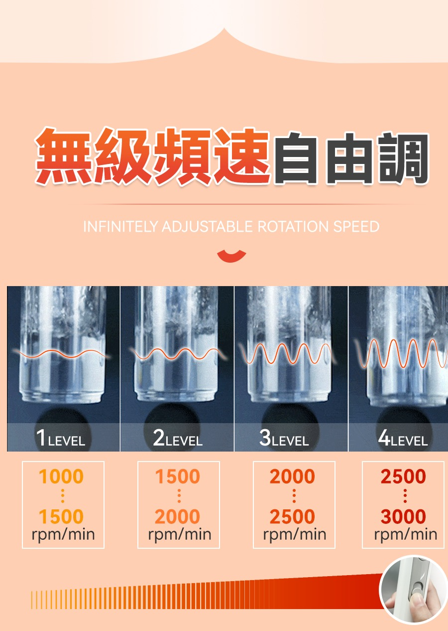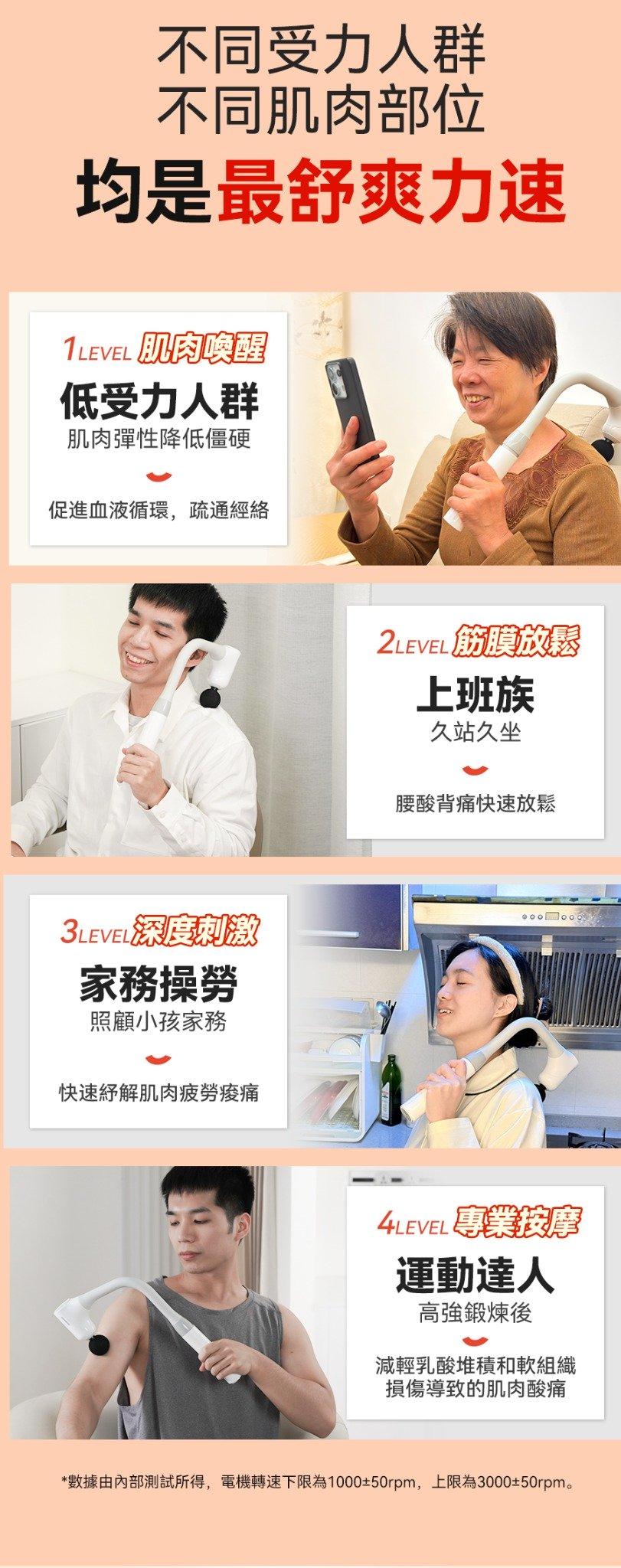 強勁性能,4檔無級頻速,用戶自定義調節按摩循序漸進