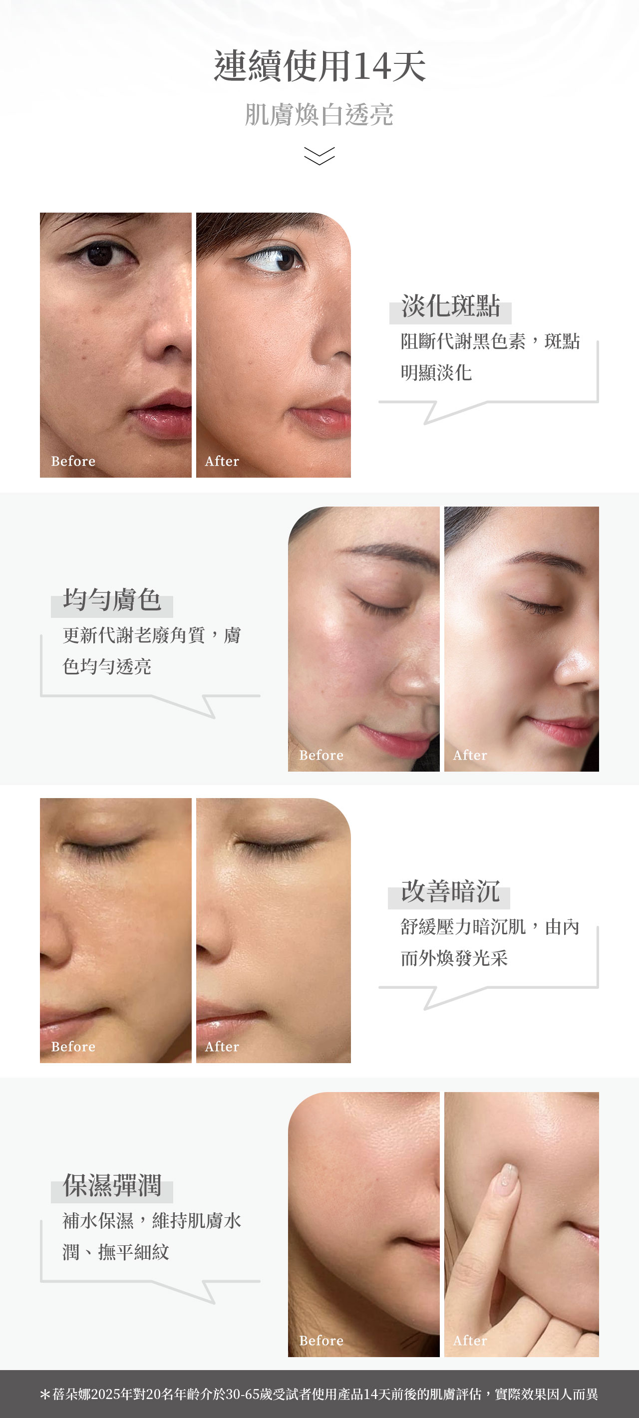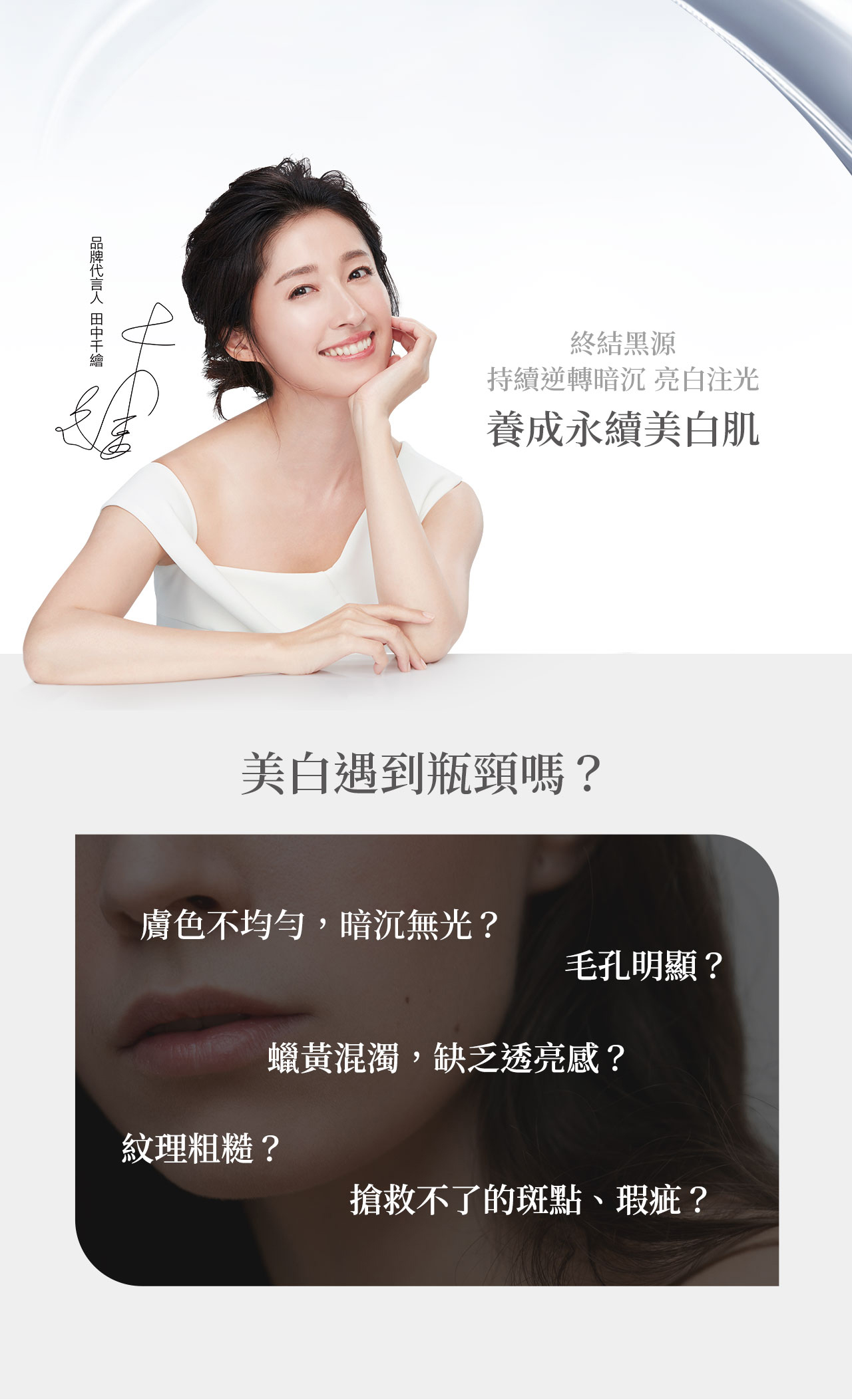 阻斷黑色素路徑,舒緩平衡肌膚狀態,掃除暗沉因子、改善肌膚瑕疵