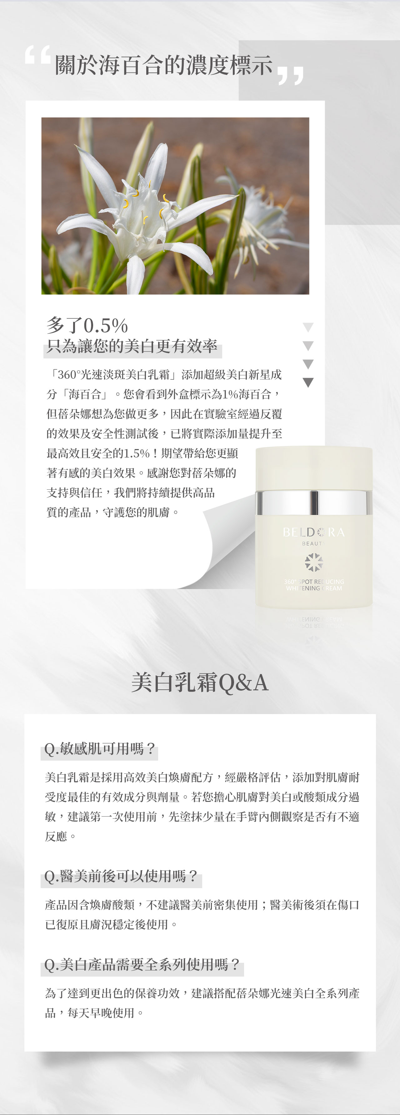 BY405 蓓朵娜 360゚光速淡斑美白乳霜-$445@1, $1088@3, 買3件送美白面膜2片