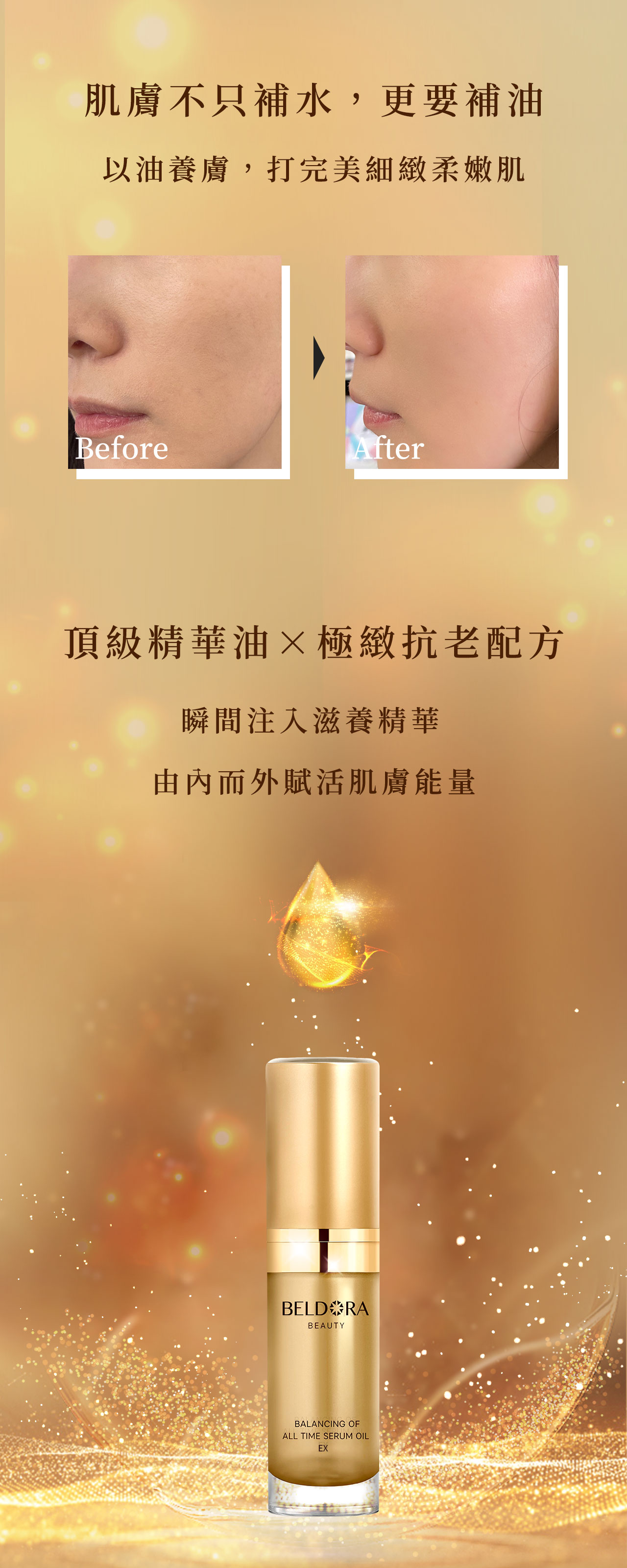 平衡時空精華油採用高科技萃取出質地輕柔的小分子精華油,顛覆市面上所有保養精華油,使用後立即煥然一新,逼近完美的膚觸實現了眾人渴求的年輕狀態。