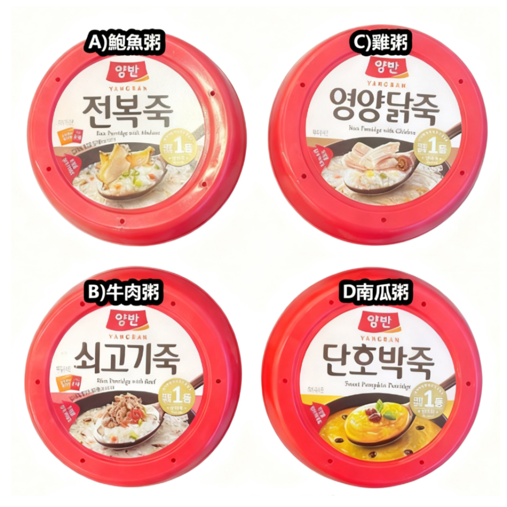 FD492 DONGWON Yangban 即食粥 4個以上,每個減$4 A鮑魚粥(287.5g) $29 B牛肉粥(287.5g) $29 C雞粥(285g) $26 D南瓜粥(285g) $26
