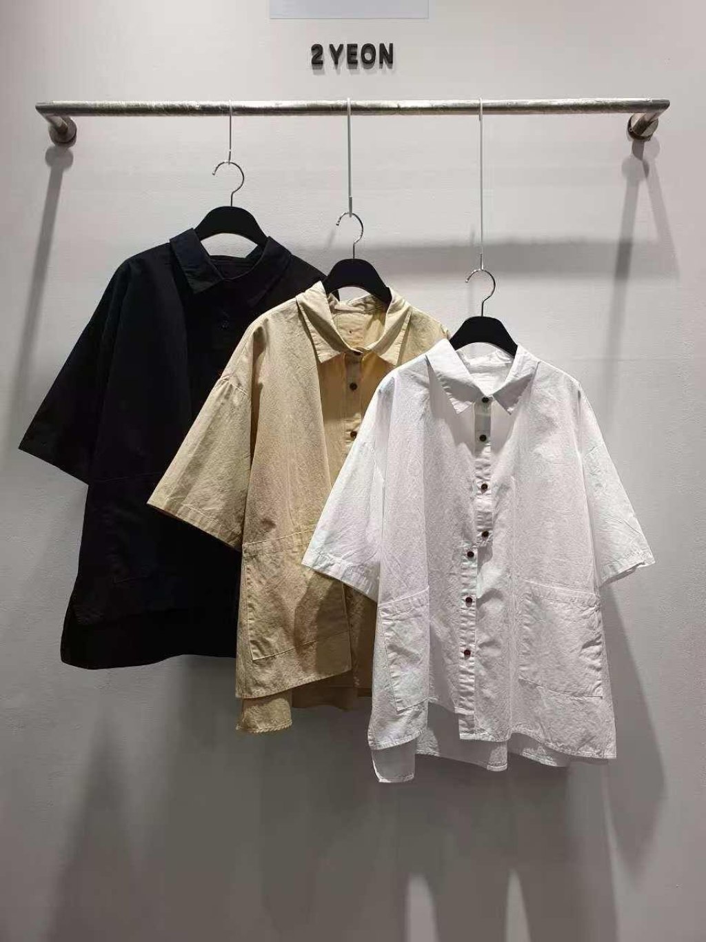 YE142 韓國 🇰🇷 2YEON扣鈕雙袋口Top $279 黑、杏、白 前長25吋、後長28吋、總闊56吋