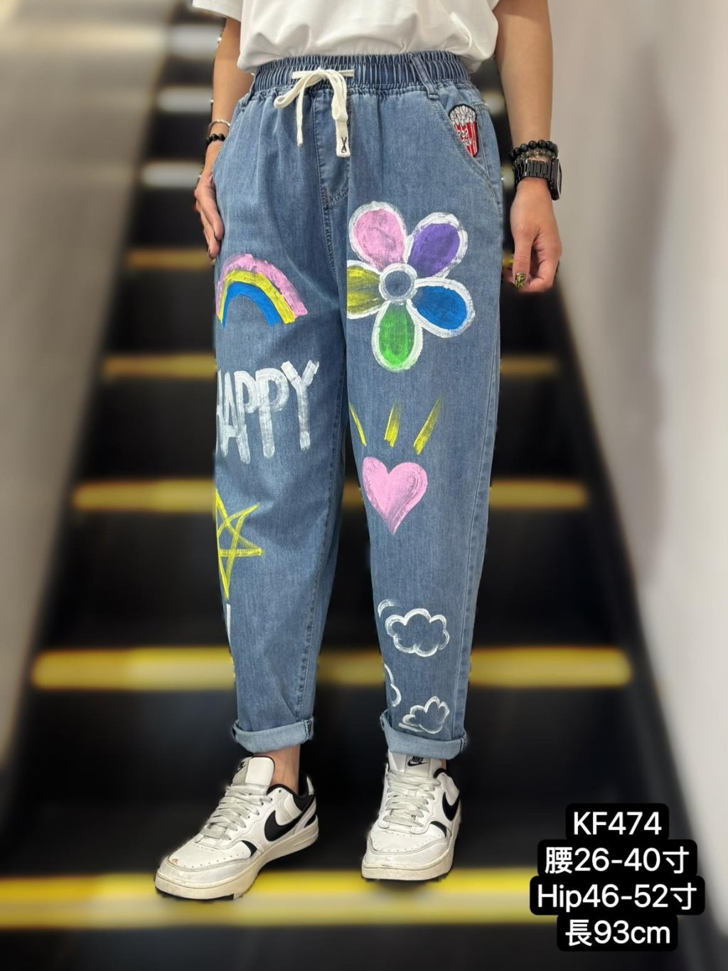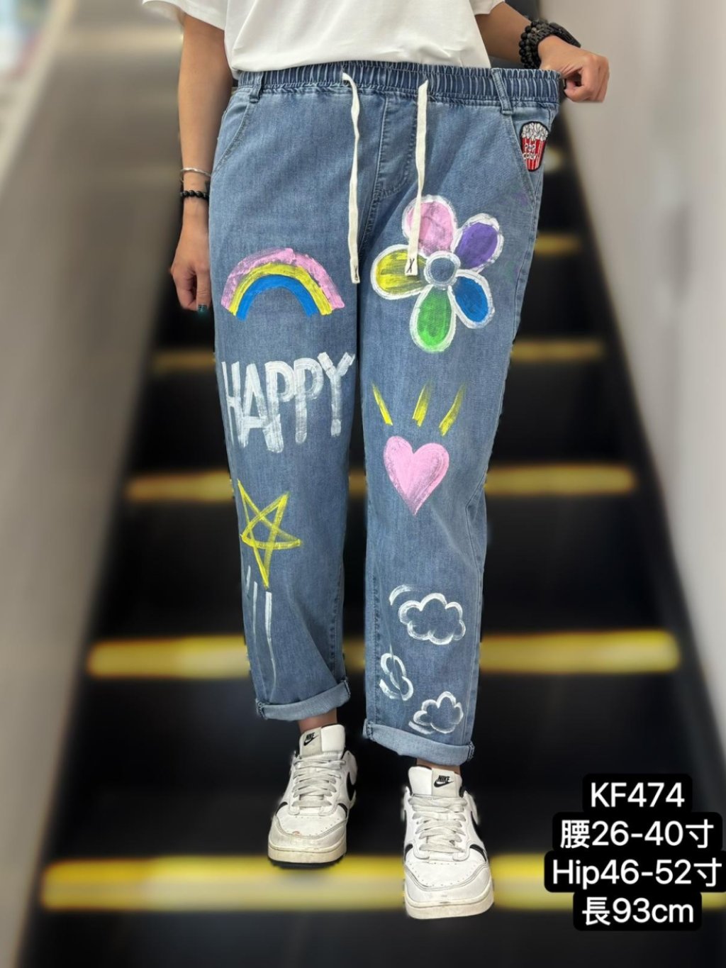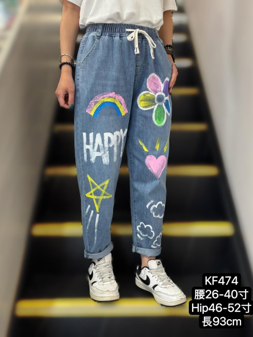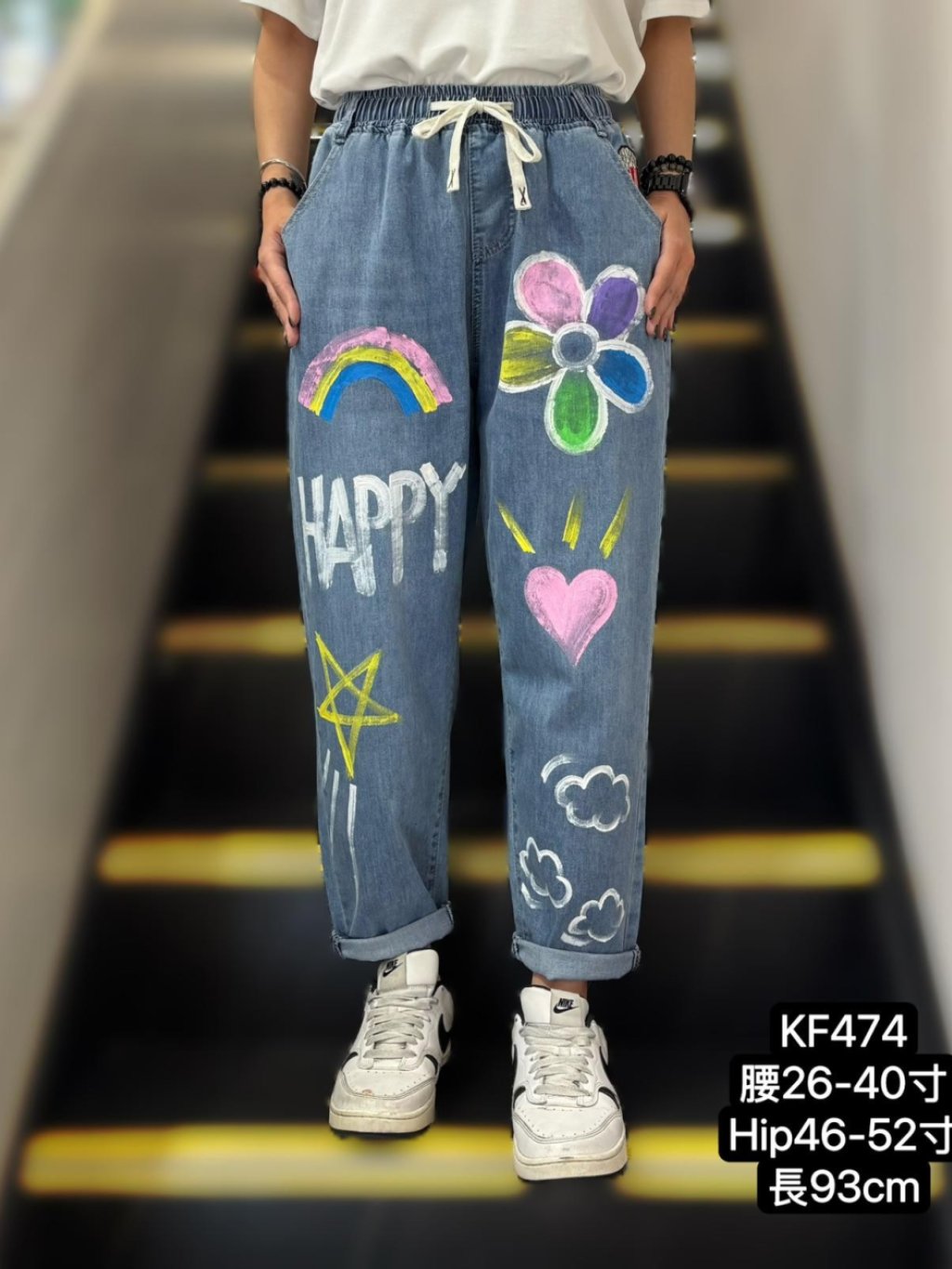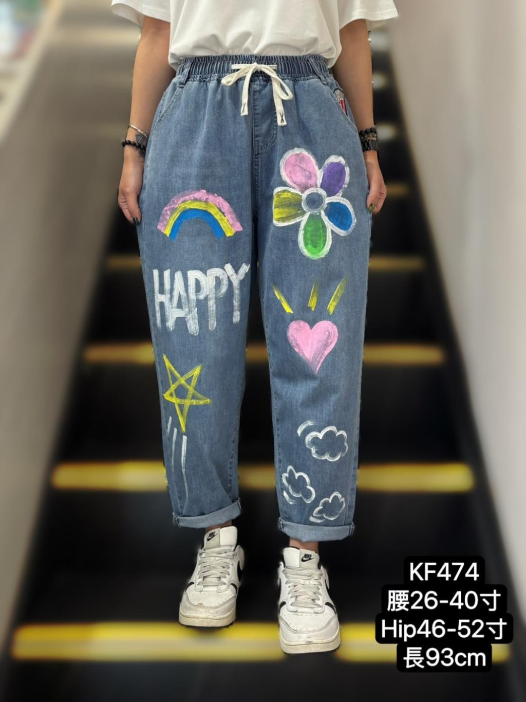 KF474 全橡筋手繪彩虹牛仔褲 $189