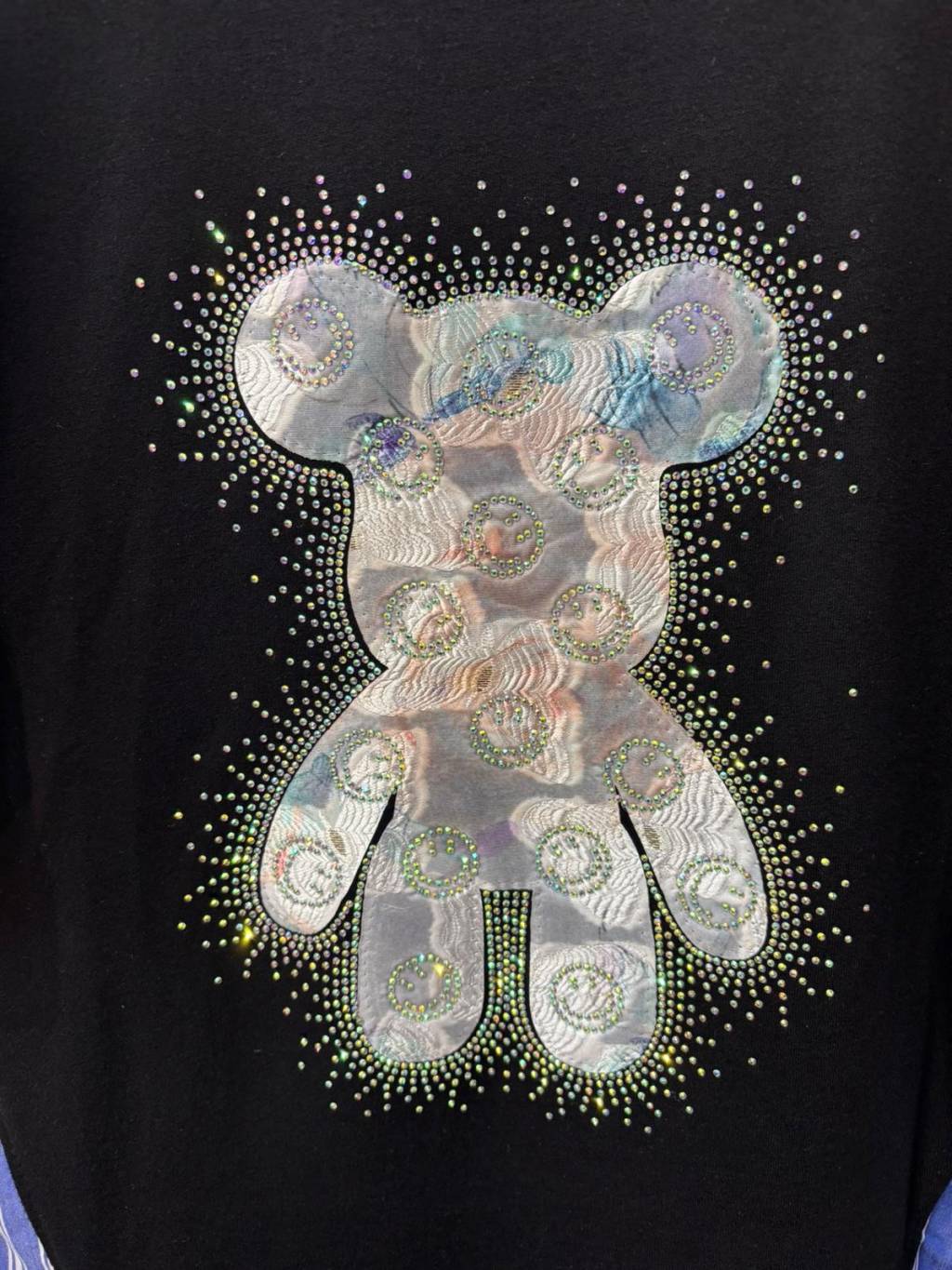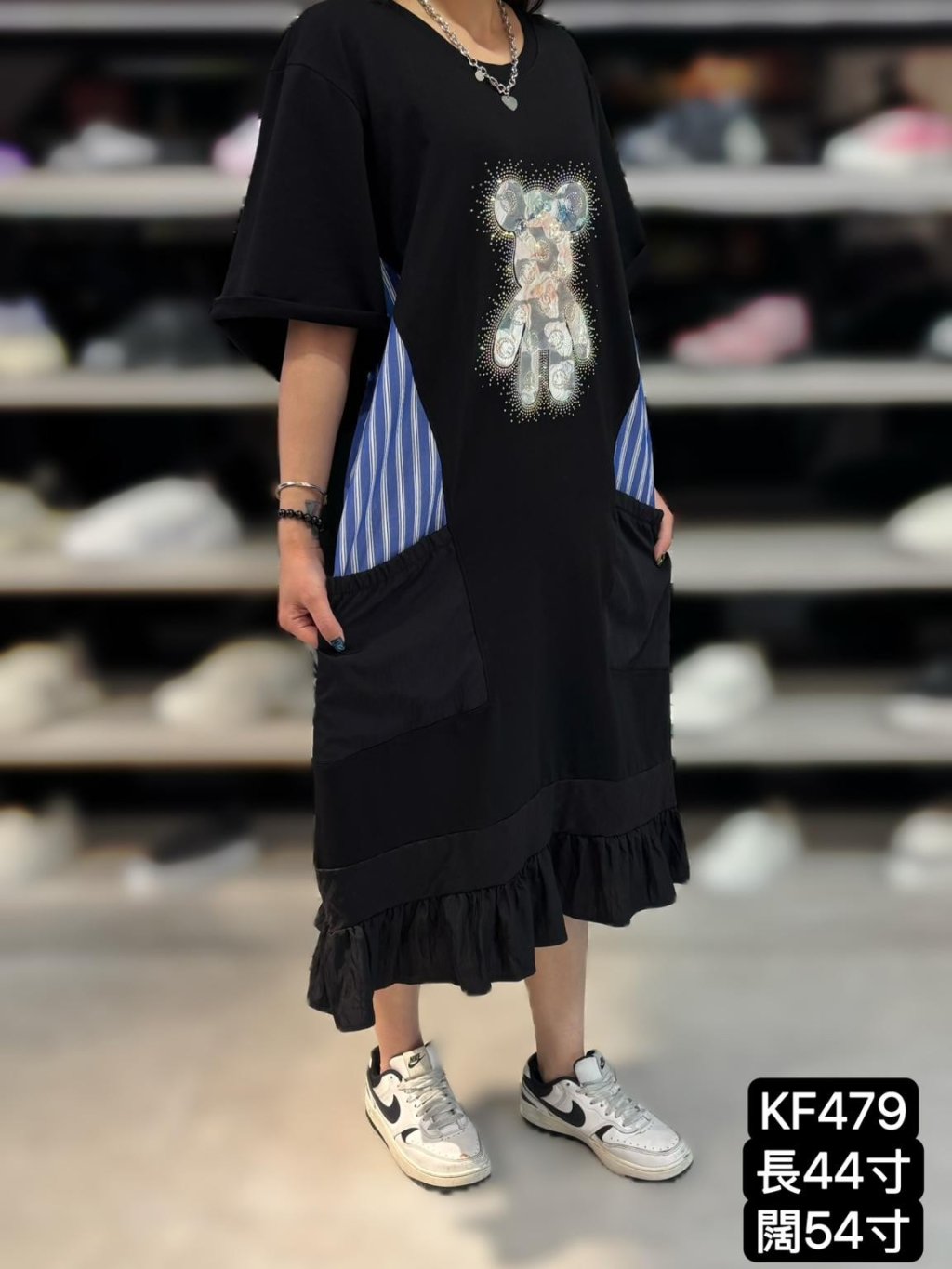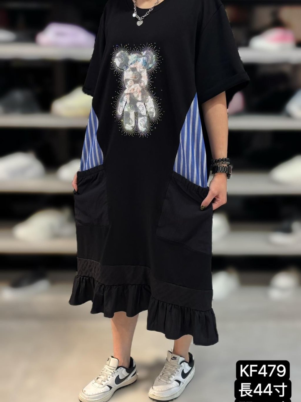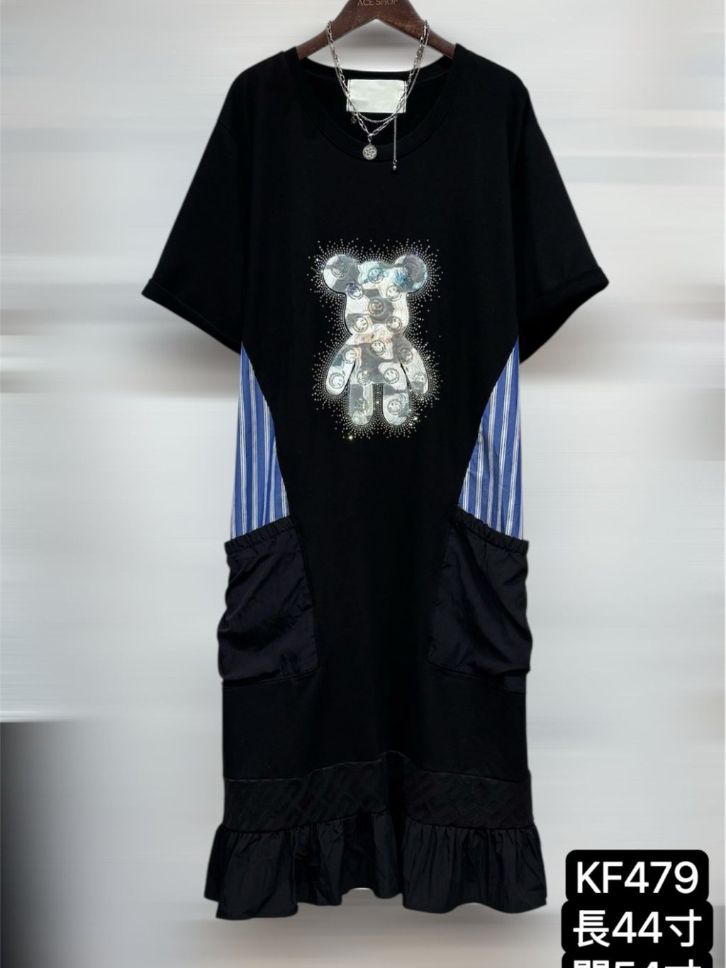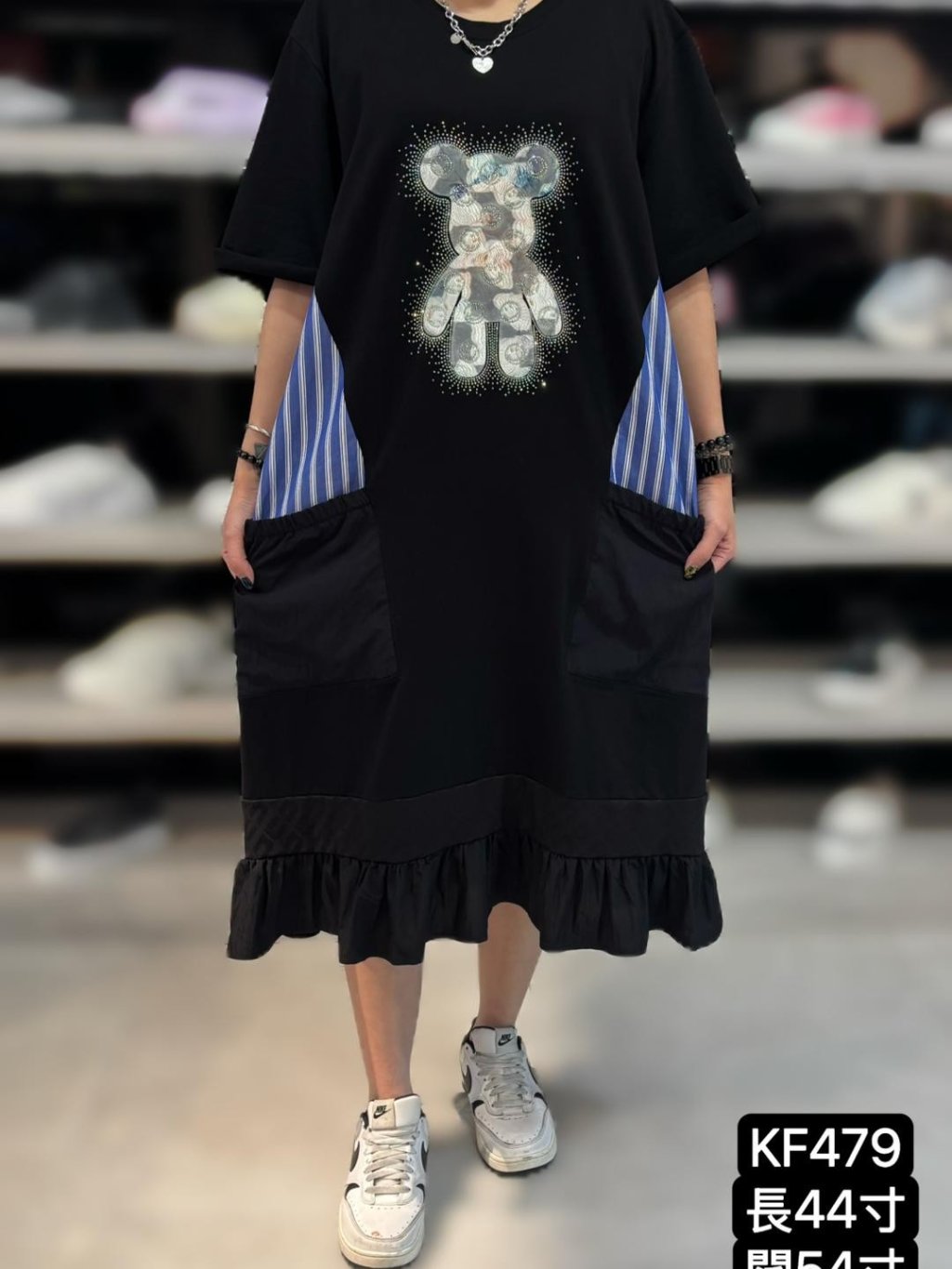 KF479 黑色棉料閃石熊仔拼條子Ops $180