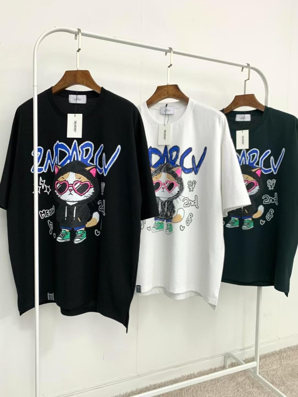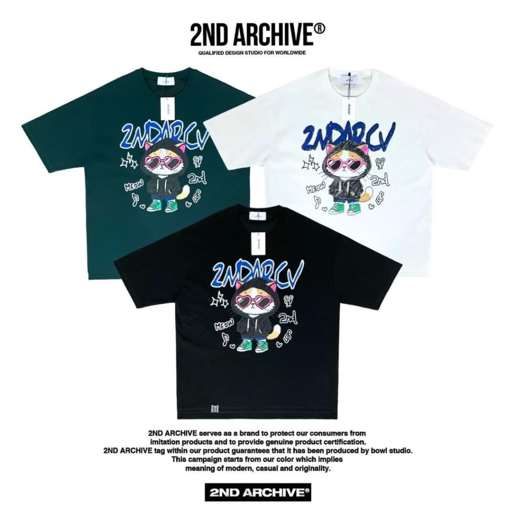 ND122 韓國 🇰🇷 2ND 愛心眼鏡貓咪TEE $159 黑、綠