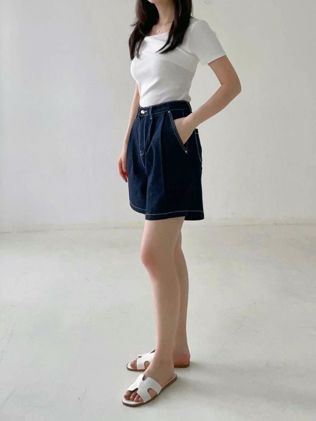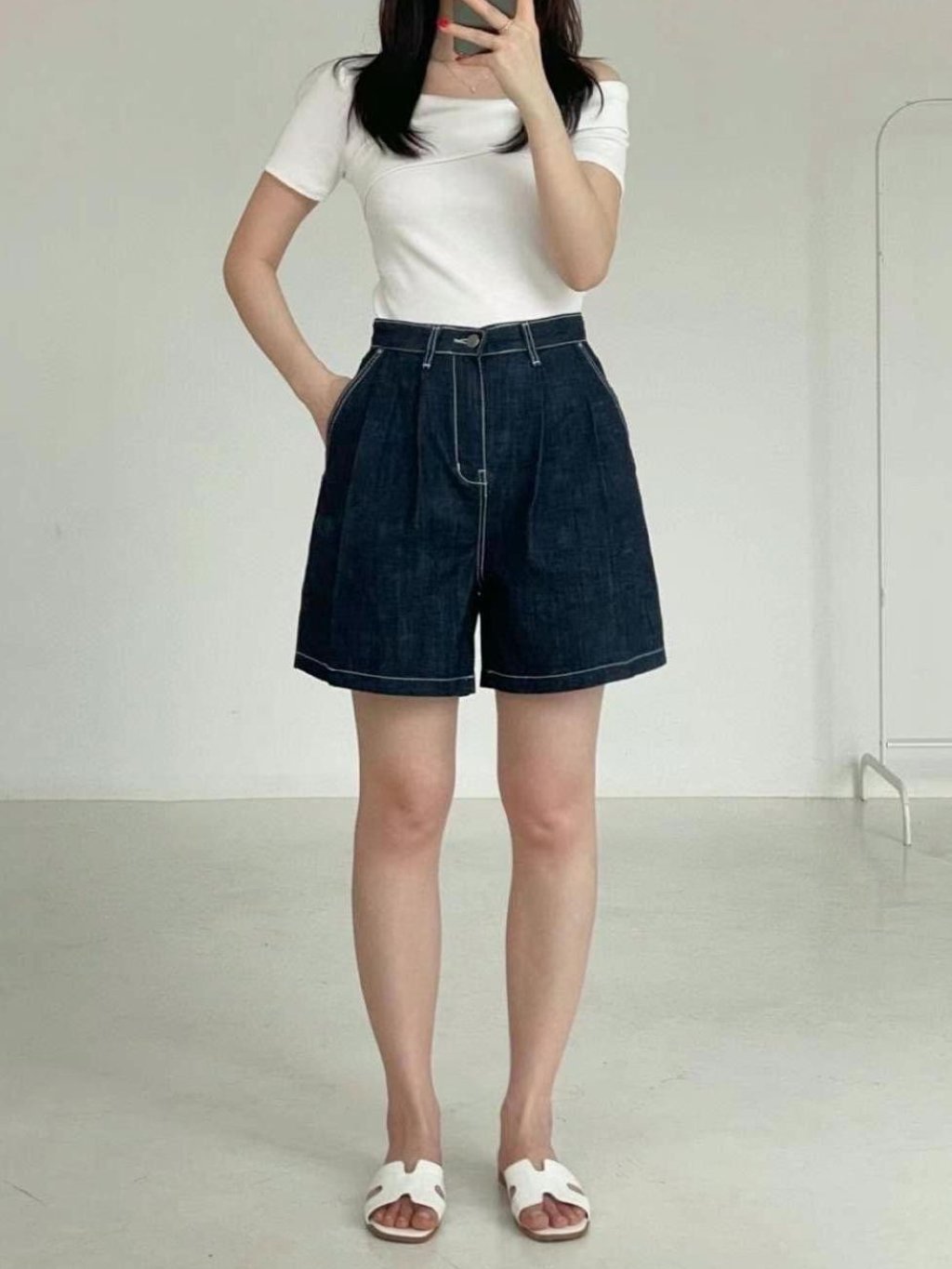 HK206 How Luk扣鈕橡筋腰皺摺短牛(No.2109) $159 S、M