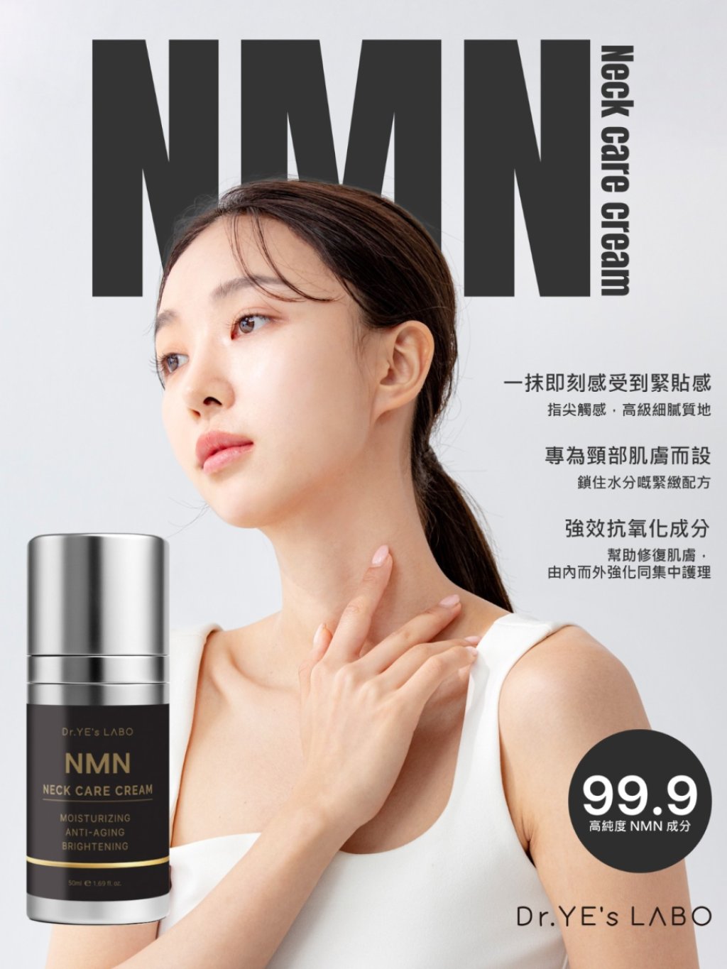 99.9% 高純度NMN – 幫NAD+生成,延緩老化,提升頸部彈性。