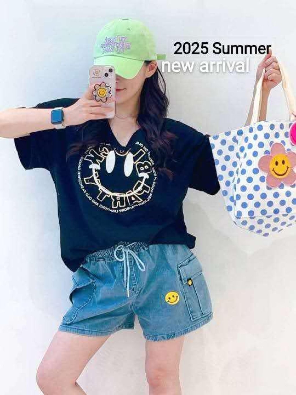 AA83 韓國 🇰🇷 棉料V領哈哈笑Top $139 前長29吋、後長34吋 白、灰、黑