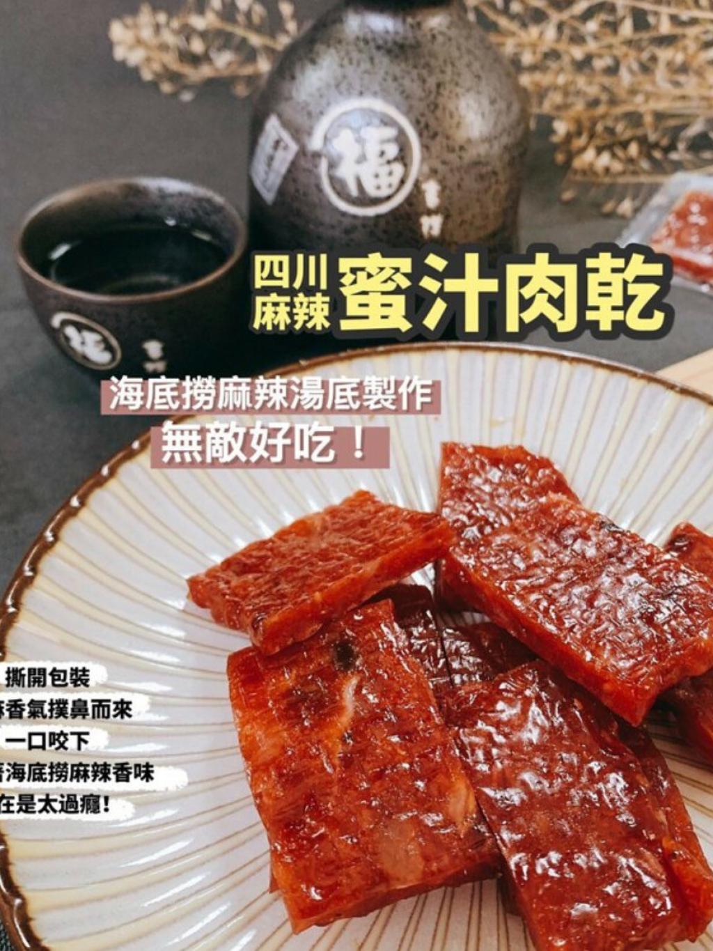 一口咬下隨著海底撈特有的麻辣香味,鮮嫩又多汁,十分帶勁且回甘,四川麻辣肉乾是麻>辣,