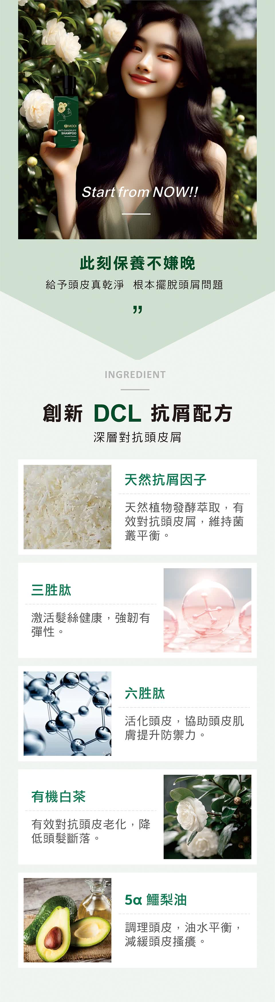 DCL天然抗屑因子 - 天然植物發酵萃取,有效對抗頭皮屑,維持菌叢平衡。