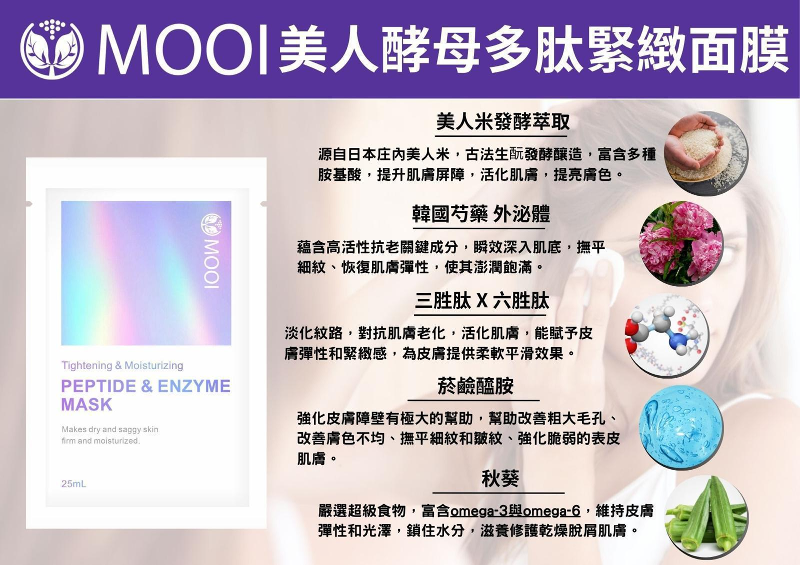 MOOI 美人酵母多肽緊緻面膜 ,讓你在短短15分鐘,感受肌膚的澎潤、緊緻與光采。