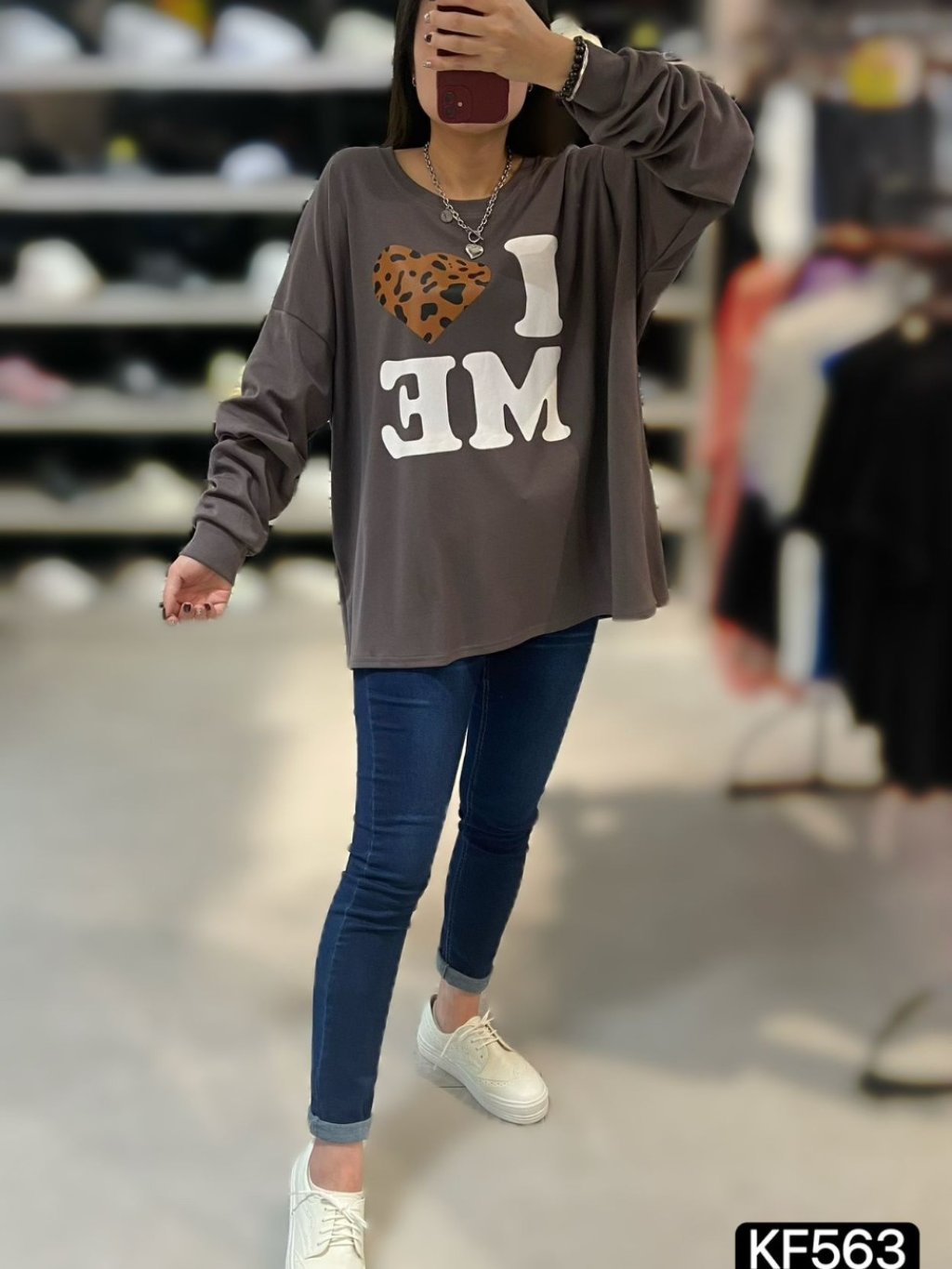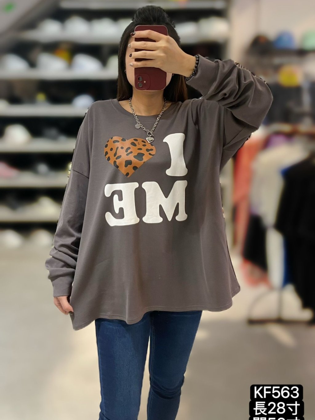主頁 KF563 棉料英文字拼豹紋心心Top $149 黑、灰
