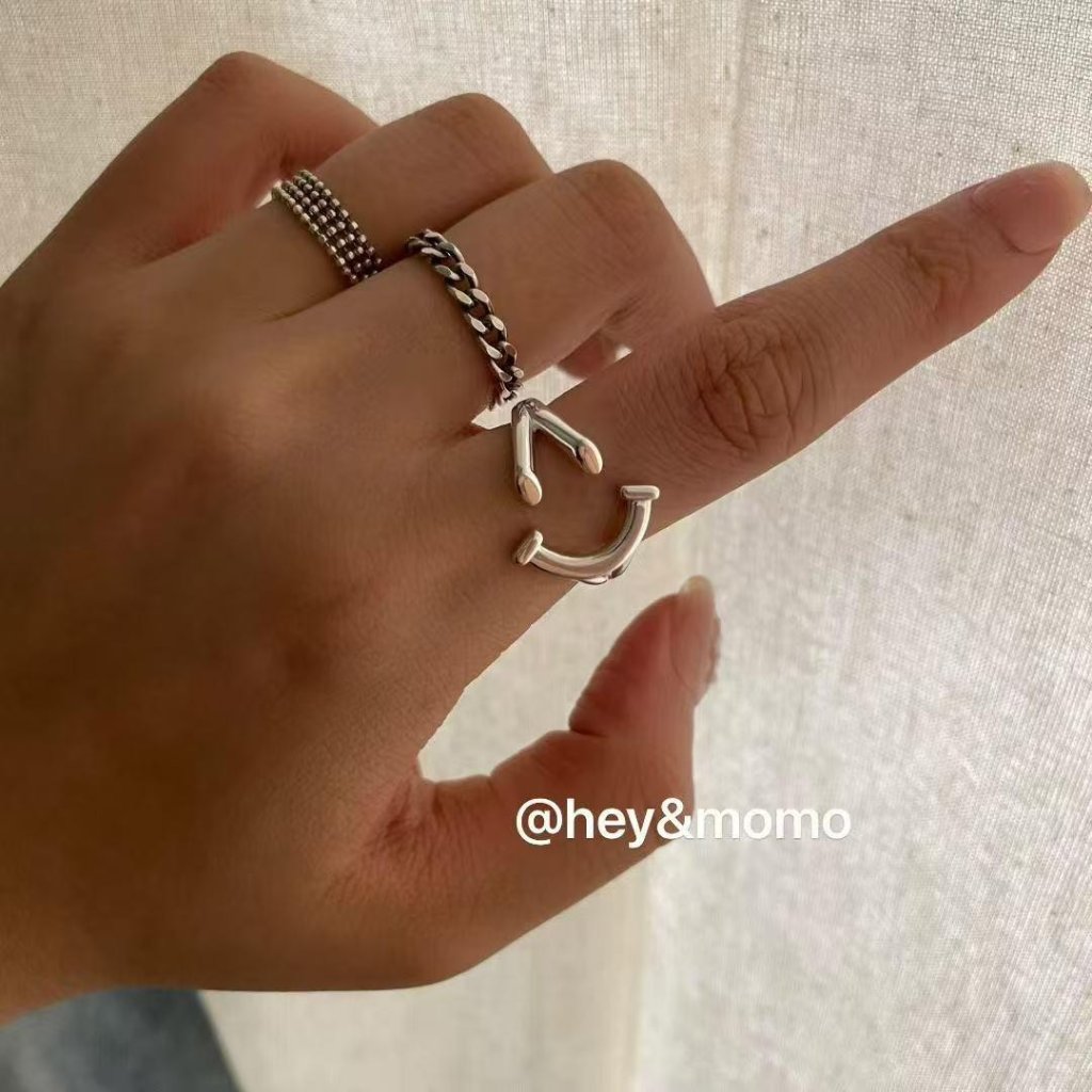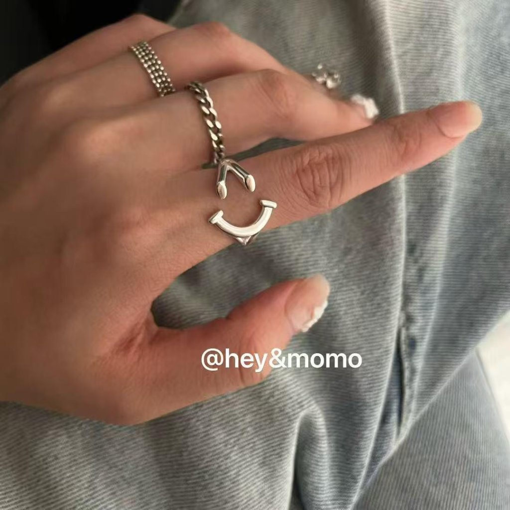 HM337 韓國 🇰🇷 925銀 個性上開口笑臉戒指 $179