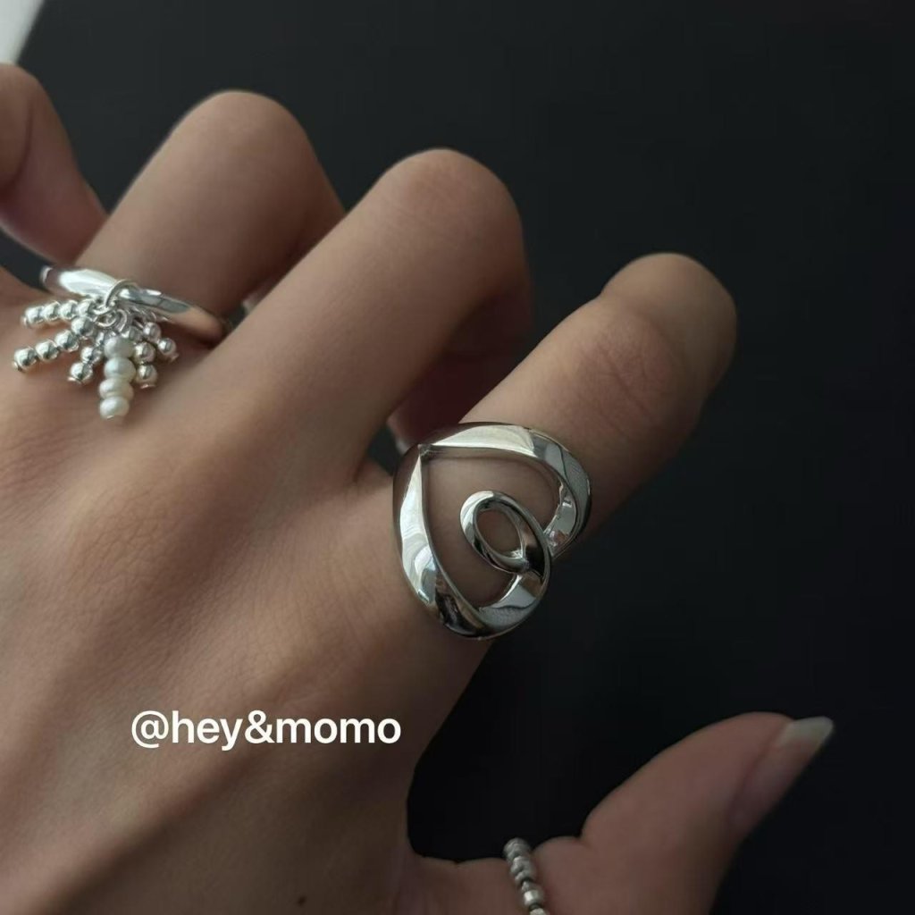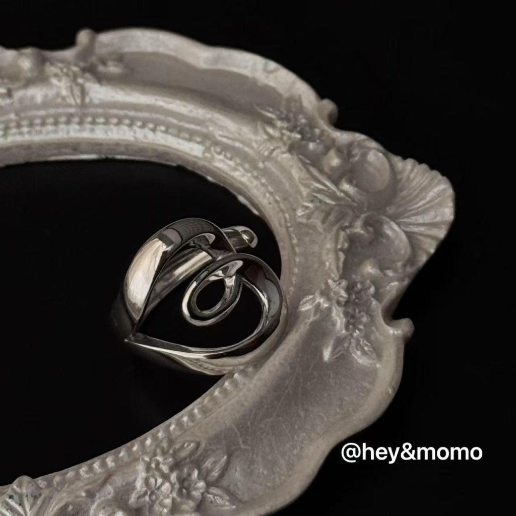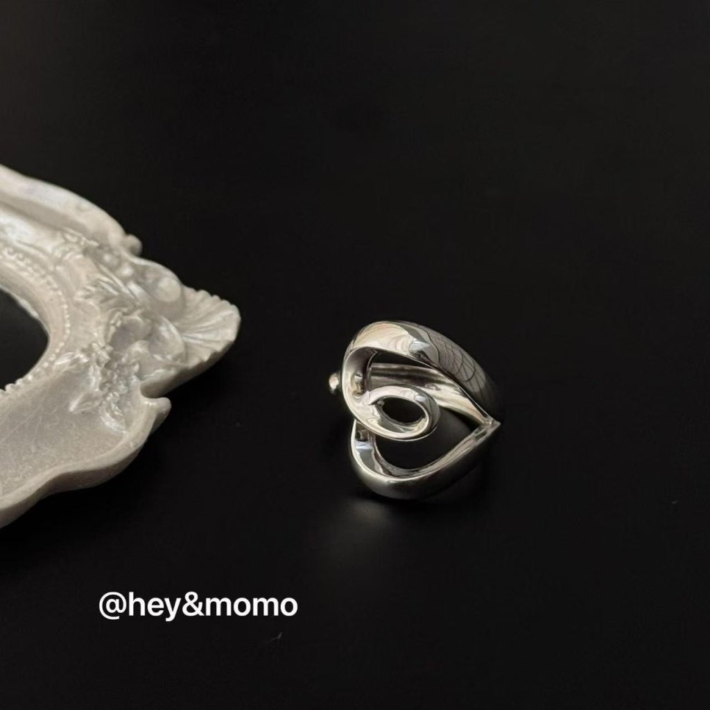 HM344韓國 🇰🇷 925銀 寬版紐結鏤空愛心 個性戒指 $209