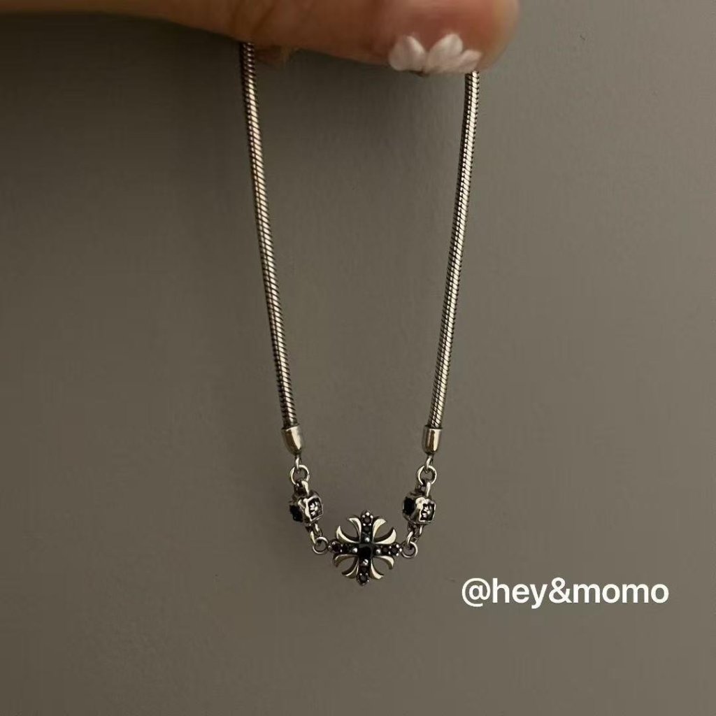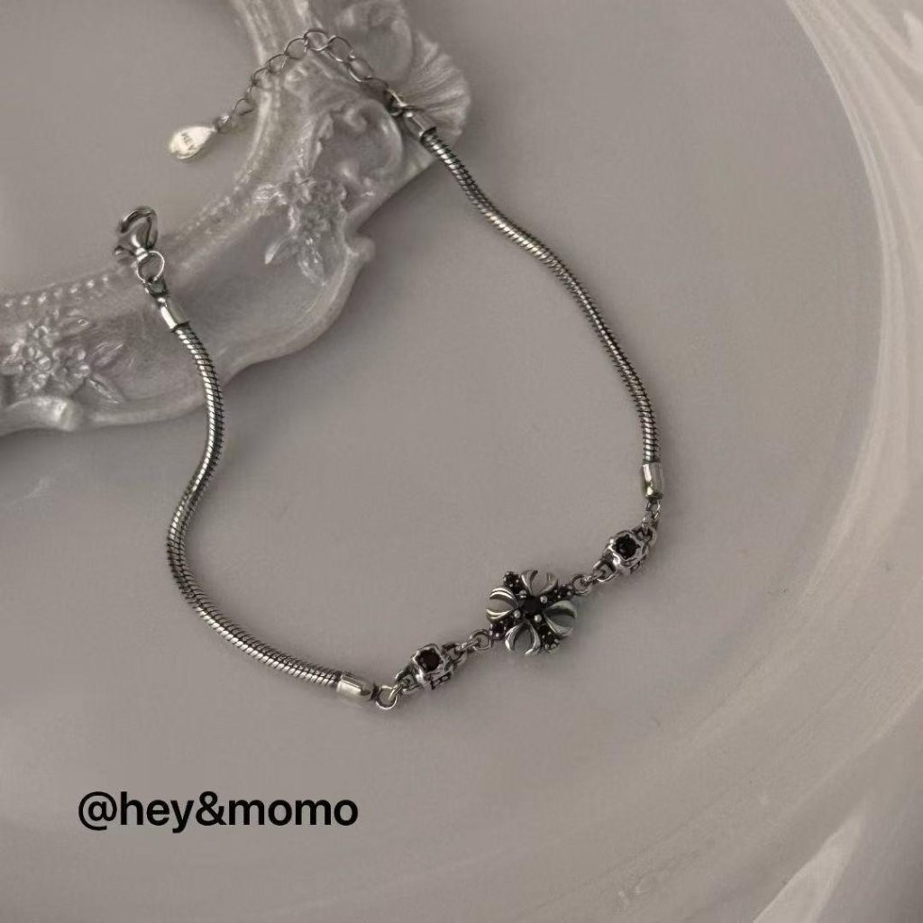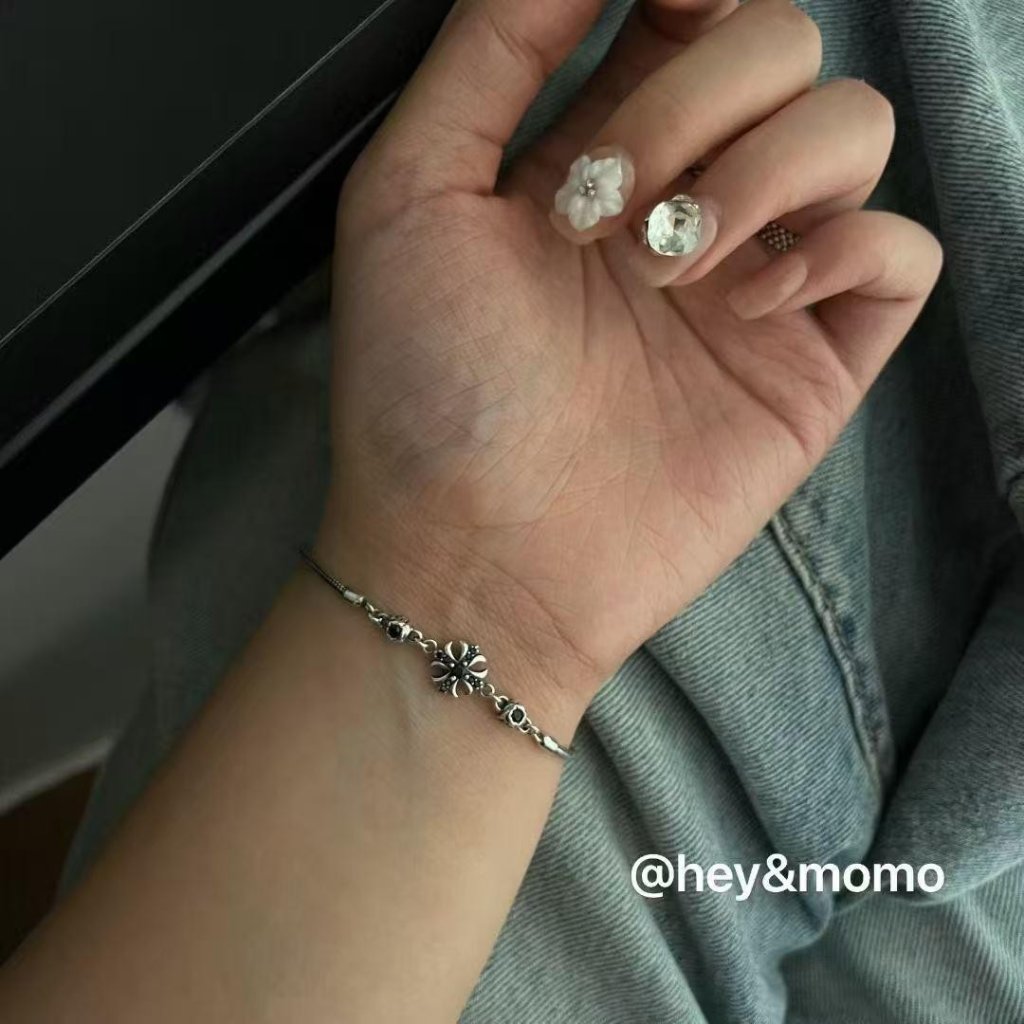 HM345 韓國 🇰🇷 925銀 黑鑽十字花 蛇骨鏈手鏈 $249