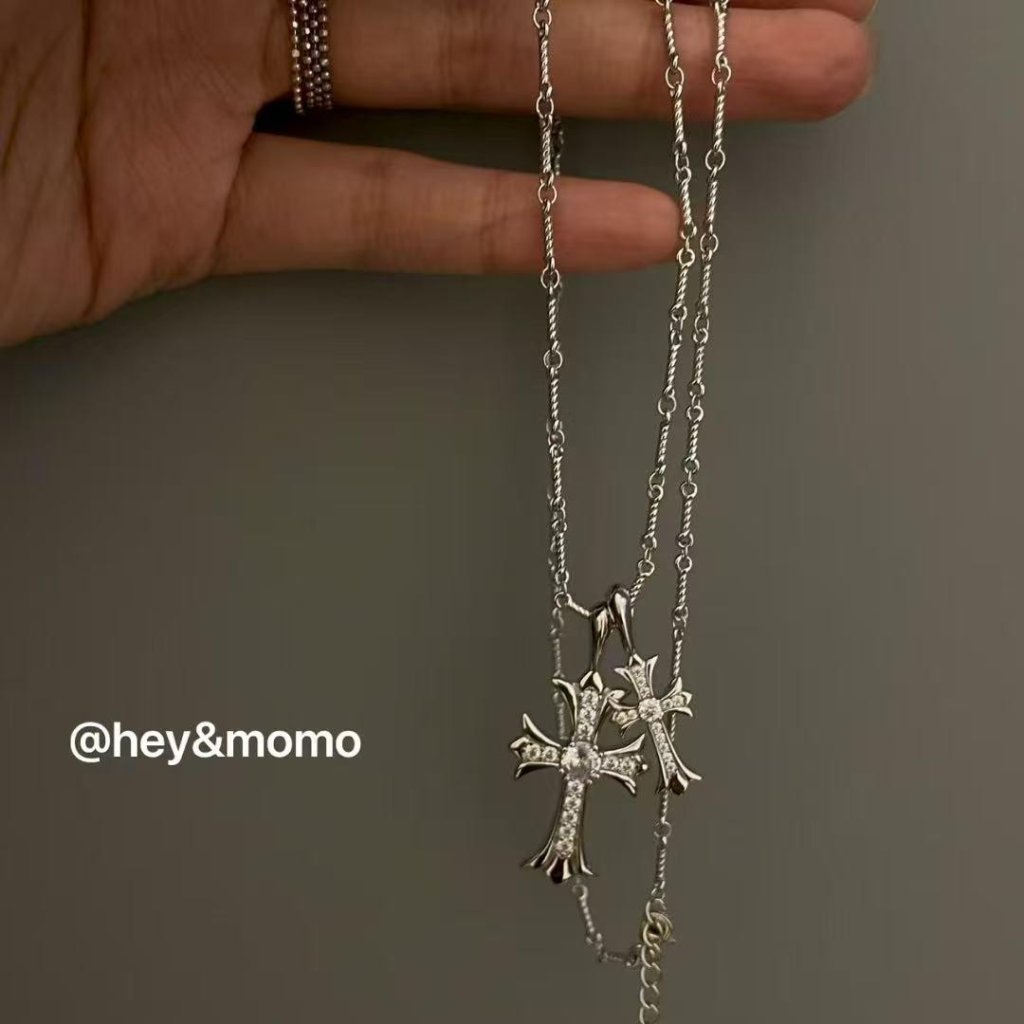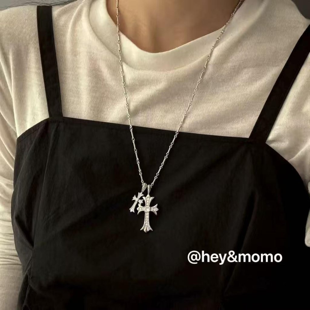 HM360 韓國 🇰🇷 925銀 微鑲滿鑽大小克羅心十字架個性長款頸鏈(GD同款) $539