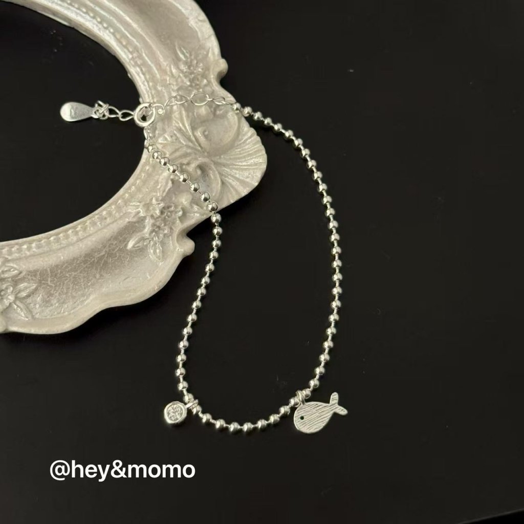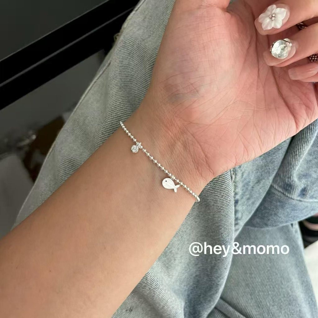 HM361 韓國 🇰🇷 925銀 磨砂小銀魚單鑽銀球手鏈 $149