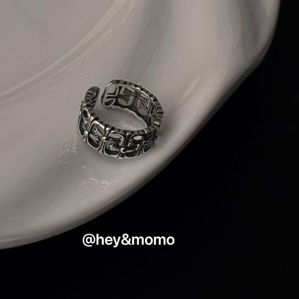 HM370 韓國 🇰🇷 925銀 寬版克羅心十字架鏤空造型尾戒 $119